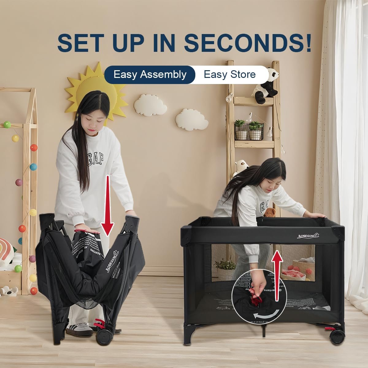 🌟 𝐄𝐟𝐟𝐨𝐫𝐭𝐥𝐞𝐬𝐬 𝐒𝐞𝐭𝐮𝐩 & 𝐒𝐩𝐚𝐜𝐞-𝐒𝐚𝐯𝐢𝐧𝐠 𝐒𝐭𝐨𝐫𝐚𝐠𝐞: Discover the ultimate convenience of our Travel Crib. With a simple one-touch setup, it’s ready for action in seconds. When it’s time to tidy up, just grab the base handle and effortlessly fold it down for compact storage. Parenting made easier!