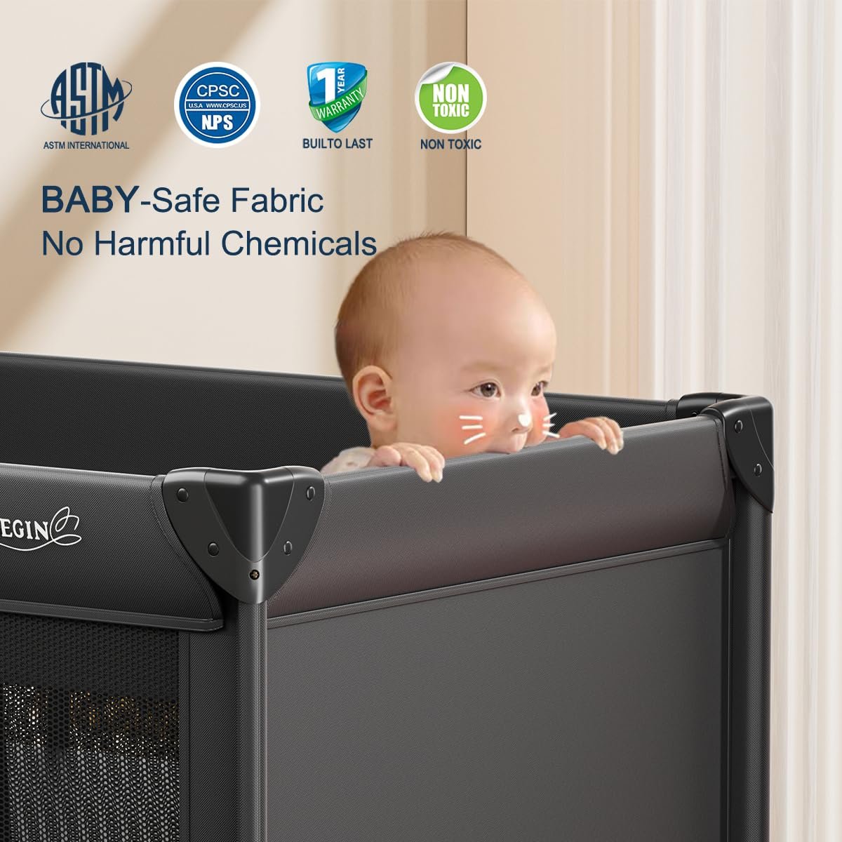 🎁 𝐓𝐡𝐞 𝐏𝐞𝐫𝐟𝐞𝐜𝐭 𝐆𝐢𝐟𝐭 𝐟𝐨𝐫 𝐄𝐯𝐞𝐫𝐲 𝐎𝐜𝐜𝐚𝐬𝐢𝐨𝐧! Our baby bed is the ultimate choice, whether for a beach getaway, a baby shower, or as a thoughtful gift for new parents or nursery center. With its spacious 39.4×27.6 inches dimensions, it offers comfort and security for various baby ages. Versatile and practical, it brings joy and convenience to any setting, whether used with a mattress or without. Give the gift of safety, ease, and endless smiles with our Playpen!