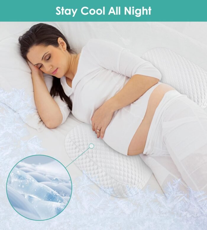 Customers find the pregnancy pillow provides excellent support for both back and belly, with one noting it’s comfortable without being bulky. The pillow features a 30° slope for side-sleeping and can be adjusted in three different sizes, making it suitable for all trimesters. Customers appreciate its cooling effect, noting they don’t overheat at night, and one mentions it helps with sleep apnea.