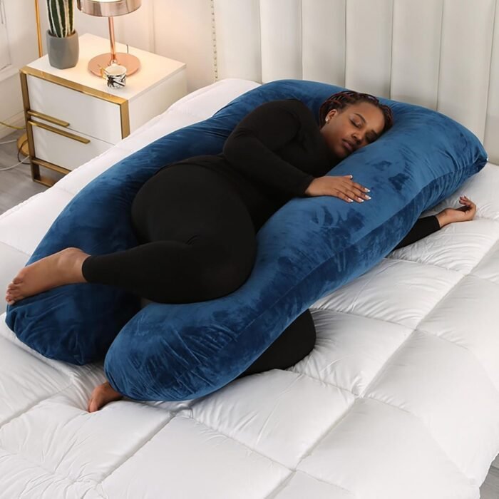 【U Shaped Pregnancy Pillow】Ergonomic Body pillow provides all-round support of the back, belly, hips, knee, legs, and lumbar, helping to relieve aches and pains during pregnancy.