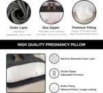 Hypoallergenic Properties: The pillow’s materials are hypoallergenic, OEKO-TEX STANDARD 100 certified product, ensuring that it’s safe for individuals with sensitive skin or allergies. This feature is particularly beneficial for those with heightened sensitivity during pregnancy, offering peace of mind knowing that the pillow is gentle on the skin. The hypoallergenic filling and cover contribute to a clean and comfortable sleeping environment, reducing the risk of irritation or allergic reactions.