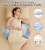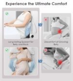 Customers find the pregnancy pillow provides excellent support for both back and belly, with one noting it’s comfortable without being bulky. The pillow features a 30° slope for side-sleeping and can be adjusted in three different sizes, making it suitable for all trimesters. Customers appreciate its cooling effect, noting they don’t overheat at night, and one mentions it helps with sleep apnea.