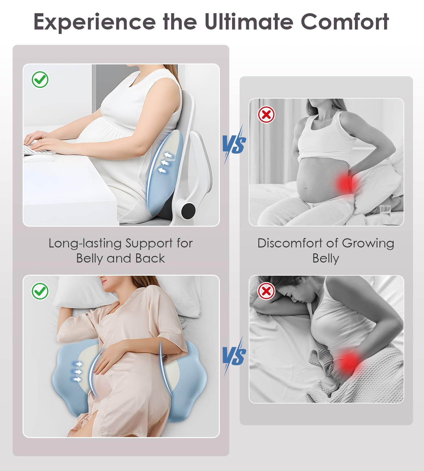 ✅Memory Foam Core Maternity Pillow: Our maternity pillow is crafted from high-quality memory foam that molds to the curves of the waist and abdomen. It quickly rebounds within 3 seconds and effectively distributes pressure, alleviating discomfort in the back and abdomen. This design ensures stability during movement, reducing sleep interruptions and enhancing overall comfort for pregnant women.