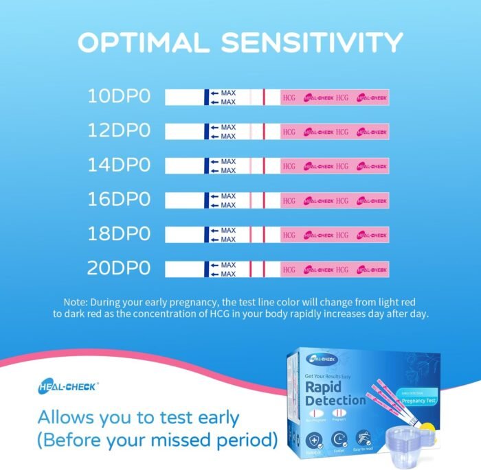 OVER 99% ACCURACY: Our pregnancy tests strips are tested by professional laboratories and are over 99% accurate, Levels of hCG as low as 25 mIU/ml can be detected at 3-5 minutes, and the HCG test strips are precise and give you the security you need