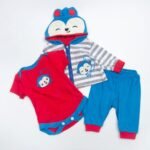Package List: a coat, a romper and a pair of trouser. This package doesn’t include the reborn doll.