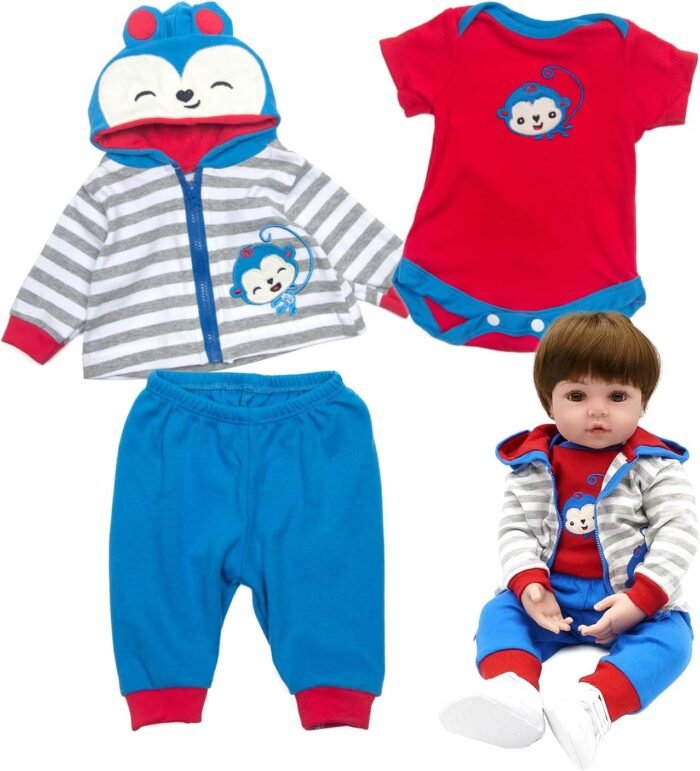 This lovely blue monkey outfit perfect fits for your 17-18 inch reborn baby boy dolls.It’s g good choice as gifts or collection.
