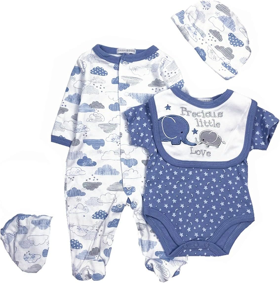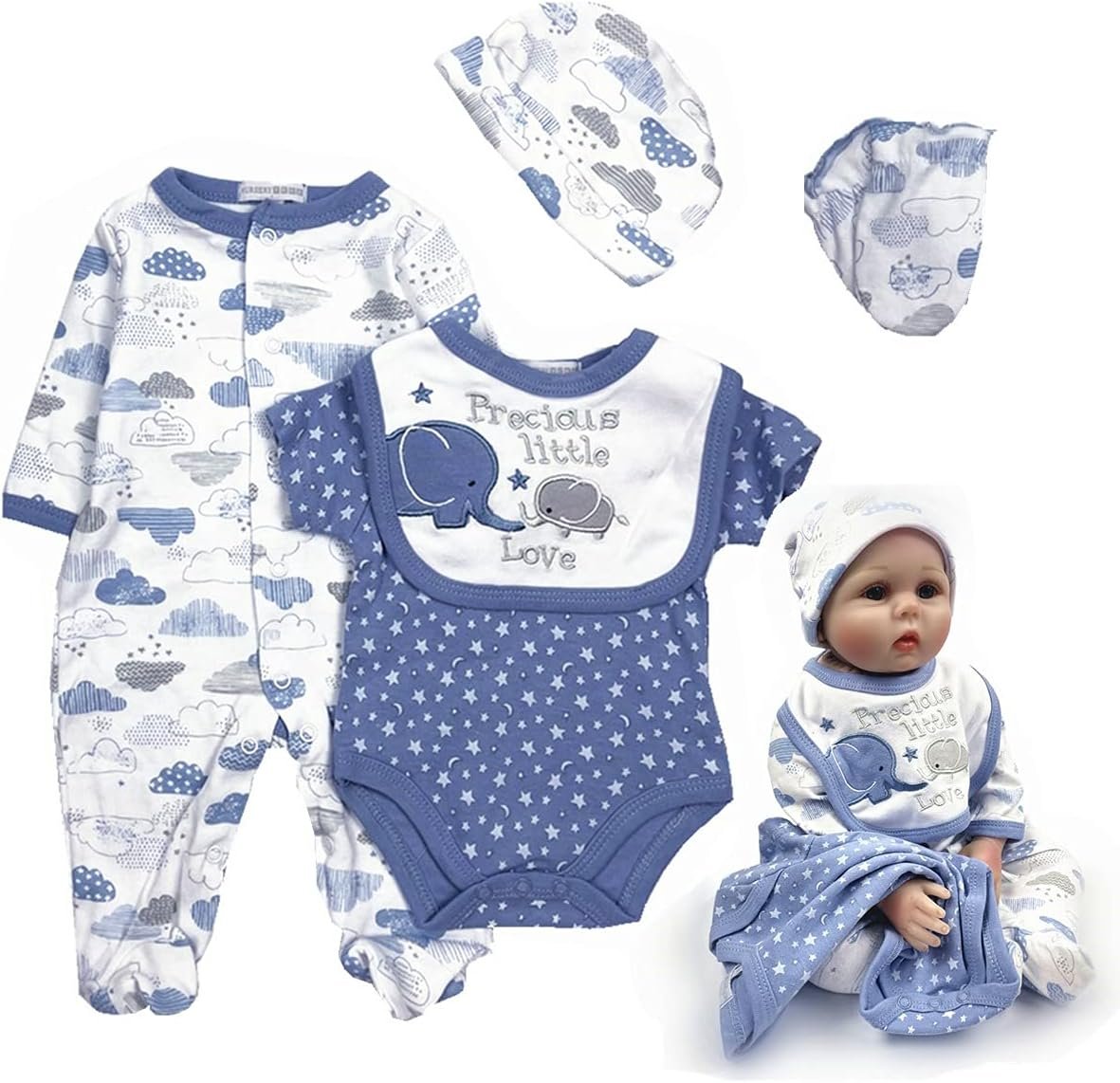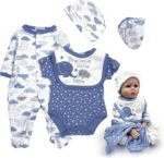 【Perfect for most reborn dolls 】Reborn baby dolls boy clothes outfit accessories 5 pcs sets fit for most 20-22″ newborn dolls.