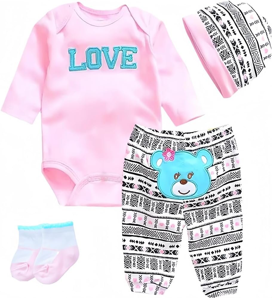 Super cute reborn baby dolls clothes outfits accessories 4 Pieces set This lovely LOVE Bear outfits is well made for designed especially for your 17-23 inches newborn baby boy and girl doll. They are handmade,designed especially for that special doll in your life.