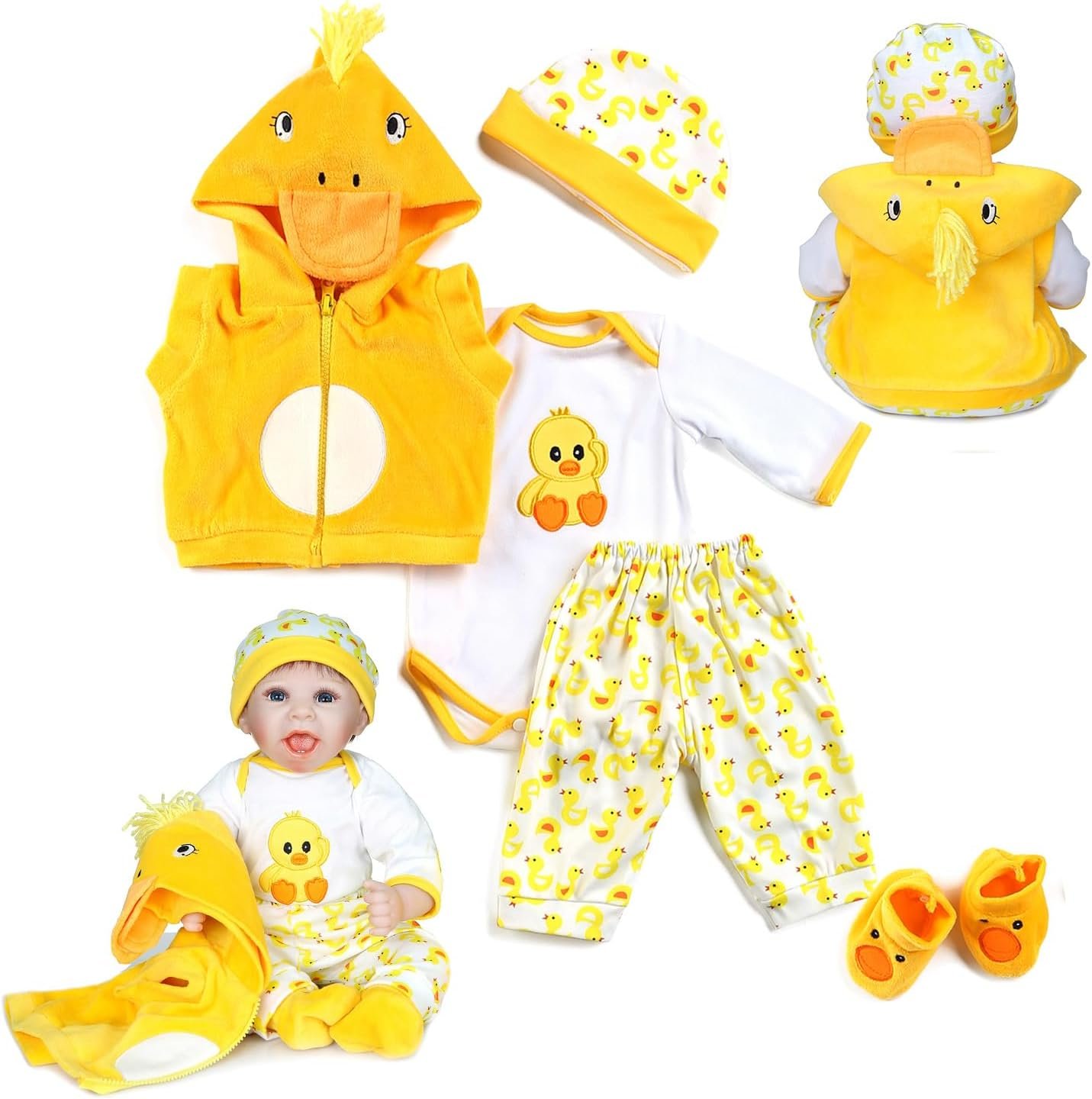This lovely reborn baby dolls girl clothes 18 inch Yellow Duck Outfits Accesories set designed especially for 16-18inch reborn baby girl.