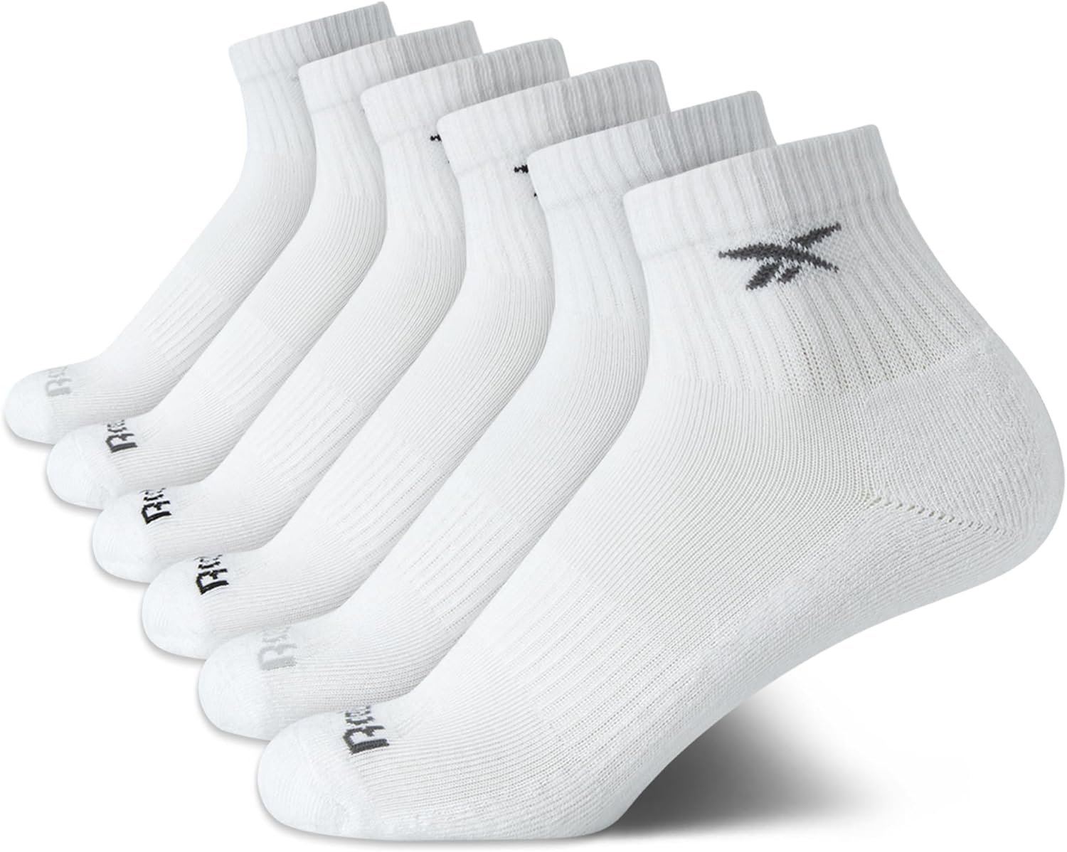 Reebok Boys’ Quarter Cut Basic Socks are going to give your child the perfect level of performance they expect from an athletic sock. Whether on the court, in the gym, or on the track, these socks were designed for playing hard. The great fit hugs the foot and stays in place while offering superior cushioning so your athlete can go the distance. Features authentic Reebok logo. Quality Materials are well made and last though wash after wash. These socks get better with each wear and will give your child room to grow. Reinforced Heel and Toe You expect socks to last a long time, Reebok offers reinforced heels and toes to extend the life of his socks to prevent holes caused from rubbing in shoes and daily wear and tear. Cushion Comfort – Muscle fatigue is significantly reduced with extra soft padded feel. When your child needs to perform these socks will go the distance. Moisture Control Heat and sweat can cause blisters which slow your kid down. Reebok socks are breathable and offer superior moisture absorption to keep their feet cool and dry when the weather heats up. Athletic Performance –Your child will love the smooth feel and won’t have to worry about bunching or twisting when he’s playing hard. Easy Care – Simply machine wash and tumble dry; Please Reference the Variations for All Available Sizes & Colors. Reebok Offers Premium Clothing at Affordable Prices because we value every customer that visits our listings! Stop by Our Storefront to See the Rest of Our Great Deals; we’re confident you’re going to find items that anyone who needs a gift will absolutely love and adore!