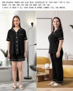Customers like the soft material, stretchiness, and color of the pajamas. They mention they’re super comfortable, accommodate their growing belly beautifully, and are of good quality. However, some customers have reported that the shorts are a little tight in the thigh area and the arms are smaller than expected.
