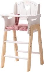 Durable Construction: Made from sturdy wood, this doll high chair is built to withstand the rigors of enthusiastic play. Its enduring charm and functionality ensure that it will remain a beloved toy for years to come, providing countless hours of entertainment and imaginative fun.