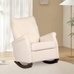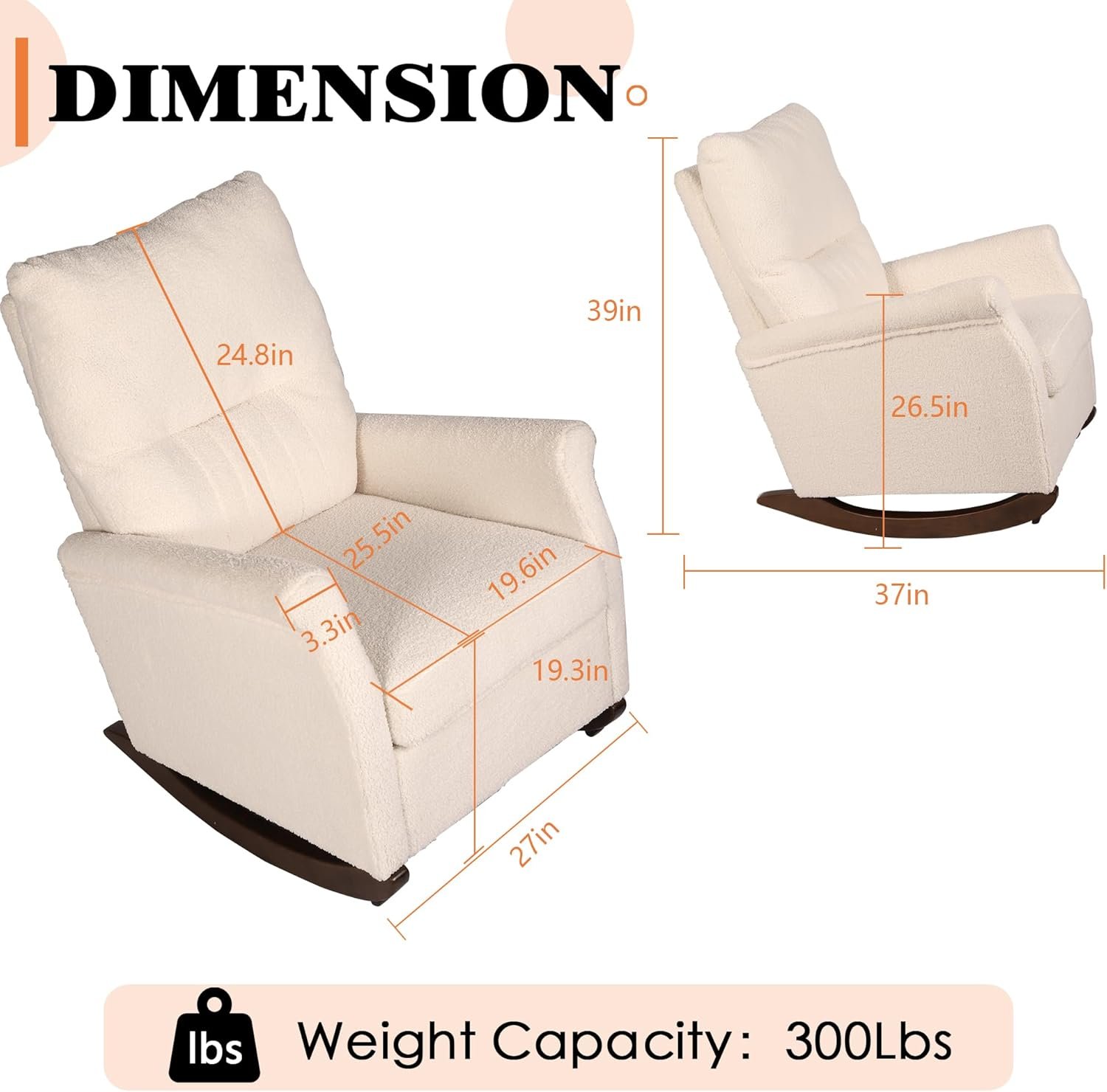 Timeless Wood Leg Support – Crafted with natural wood legs, this nursery glider chair blends seamlessly into any aesthetic. The accent chair for living room adding a touch of warmth and elegance while providing steadfast support. And sturdy rubberwood base provide 300lbs weight capacity.