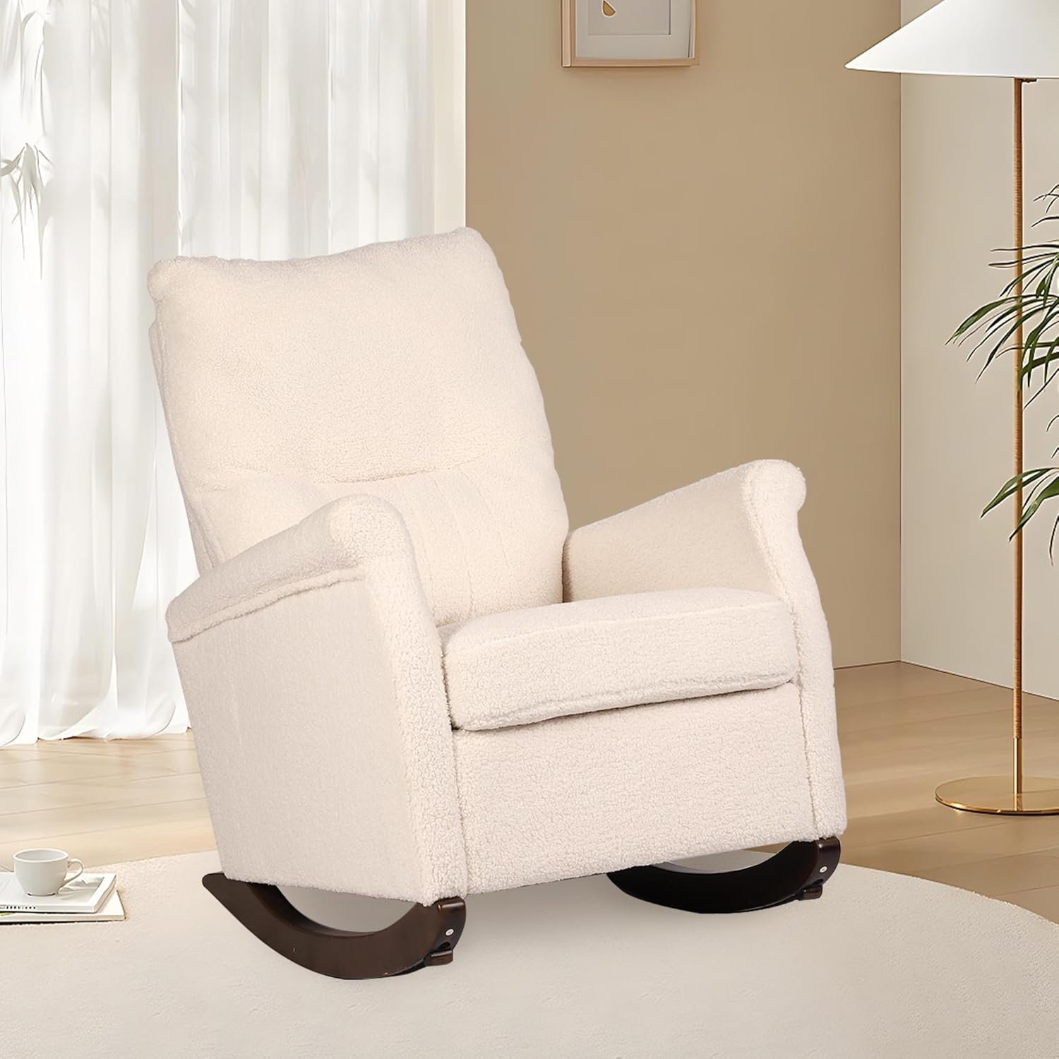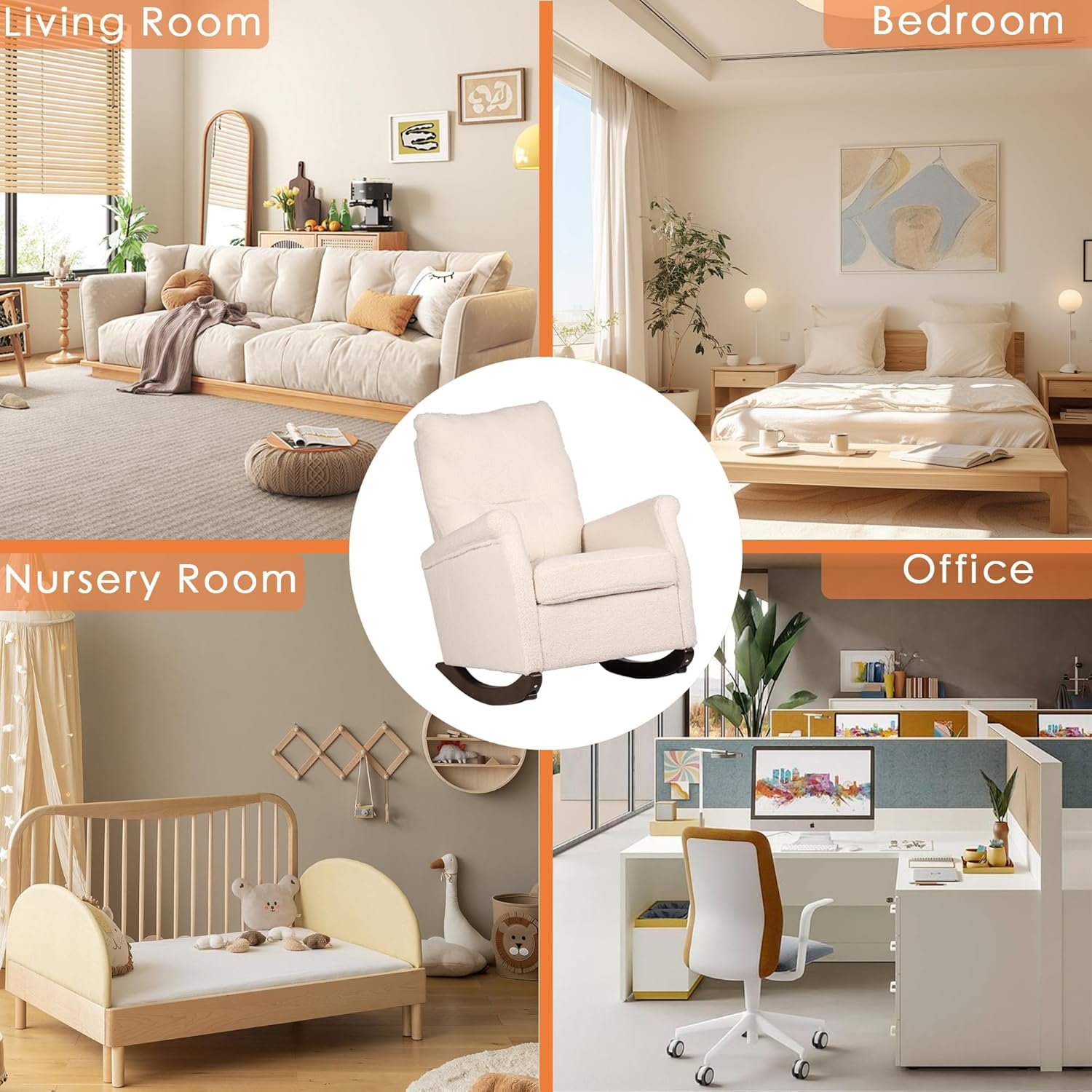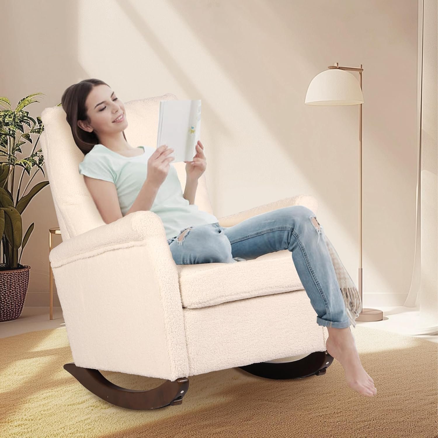 Luxurious Fabric – Upholstered in premium lambswool fabric, this nursery rocking chair offers an incredibly soft touch and resists pilling and shedding. Combined with durable composite fabric and high-density resilient sponge filling, it provides a plush, comfortable lying experience.