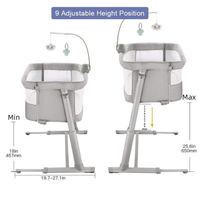 Adjustable Height and Feet: Adjusts to the same height as mom & dad’s bed,adjustable feet retractable closer to the bed, create a perfectly eye level for 3 a.m. gazes,making it easier for you to care for your baby even in the middle of the night. 9 height adjustable ideal for all kinds of beds and sofas.