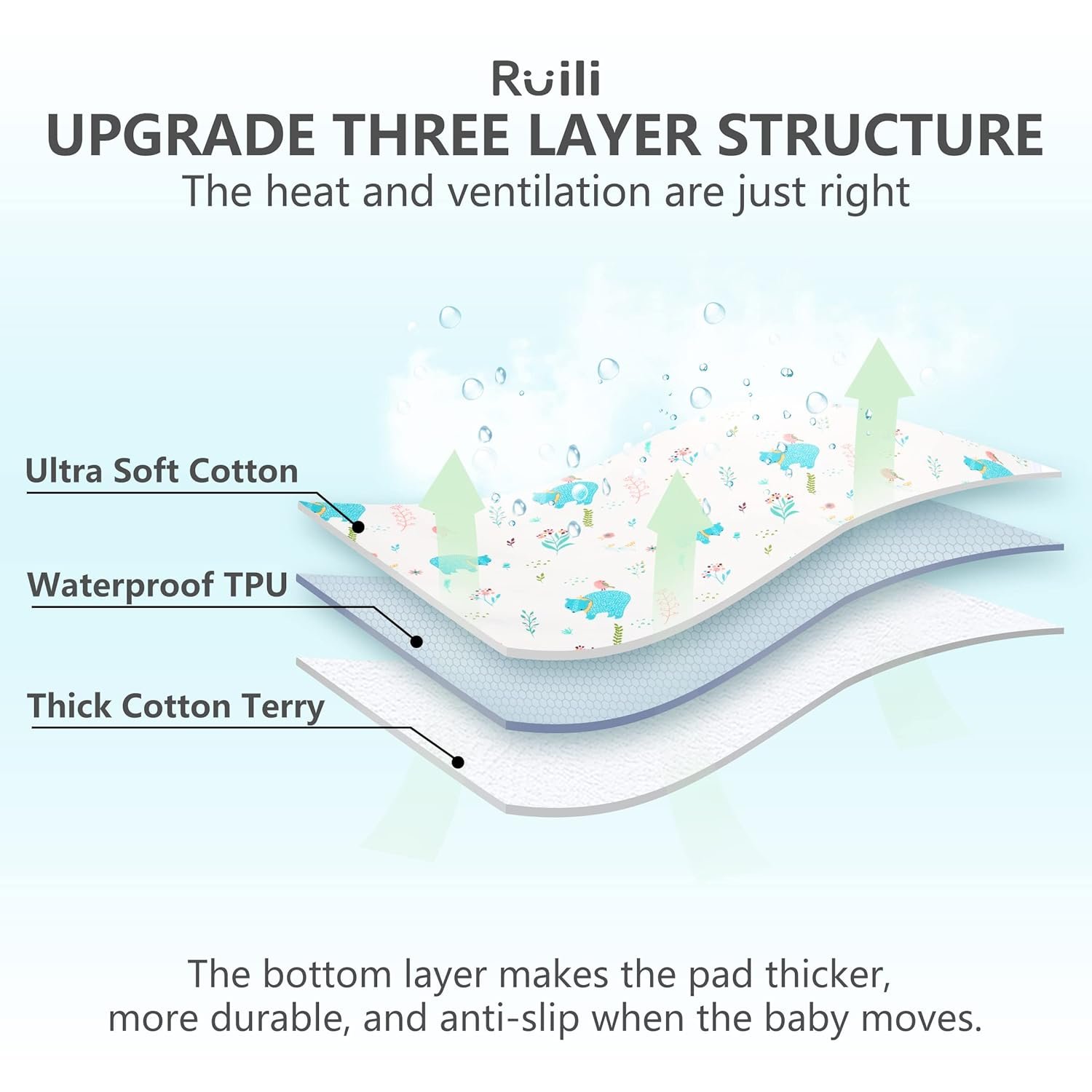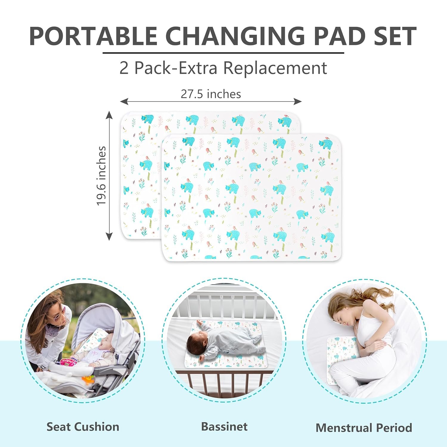 HIGHLY ABSORBENT: The changing pad mat is made of soft pure cotton, it’s breathable and suitable for a baby’s sensitive skin. With the TPU waterproof layer, the diaper changing pad is 100% leakproof.