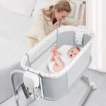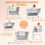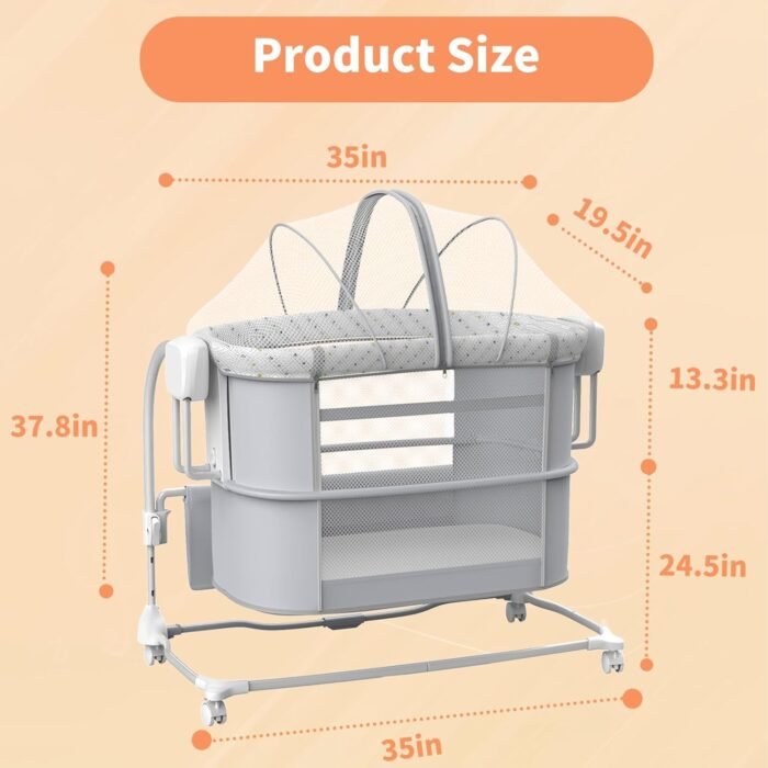 4.🌸🌸Adjustable mode: The baby bed sleeper has three adjustable heights. You can adjust the baby bedside bassinet to a height that suits you to better take care of your baby. The rocking bassinet for baby also has four levels of rocking time and five levels of rocking speed, making efficient use of every minute.