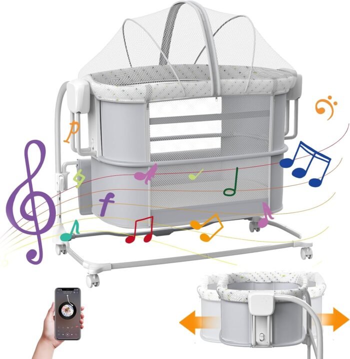 5.🌼🌼Easy Parenting: The execution of various functions of the newborn bassinet is controlled through the touch screen panel, and you can also use Bluetooth on your mobile phone for remote control, saving more rest time and making parenting easy.