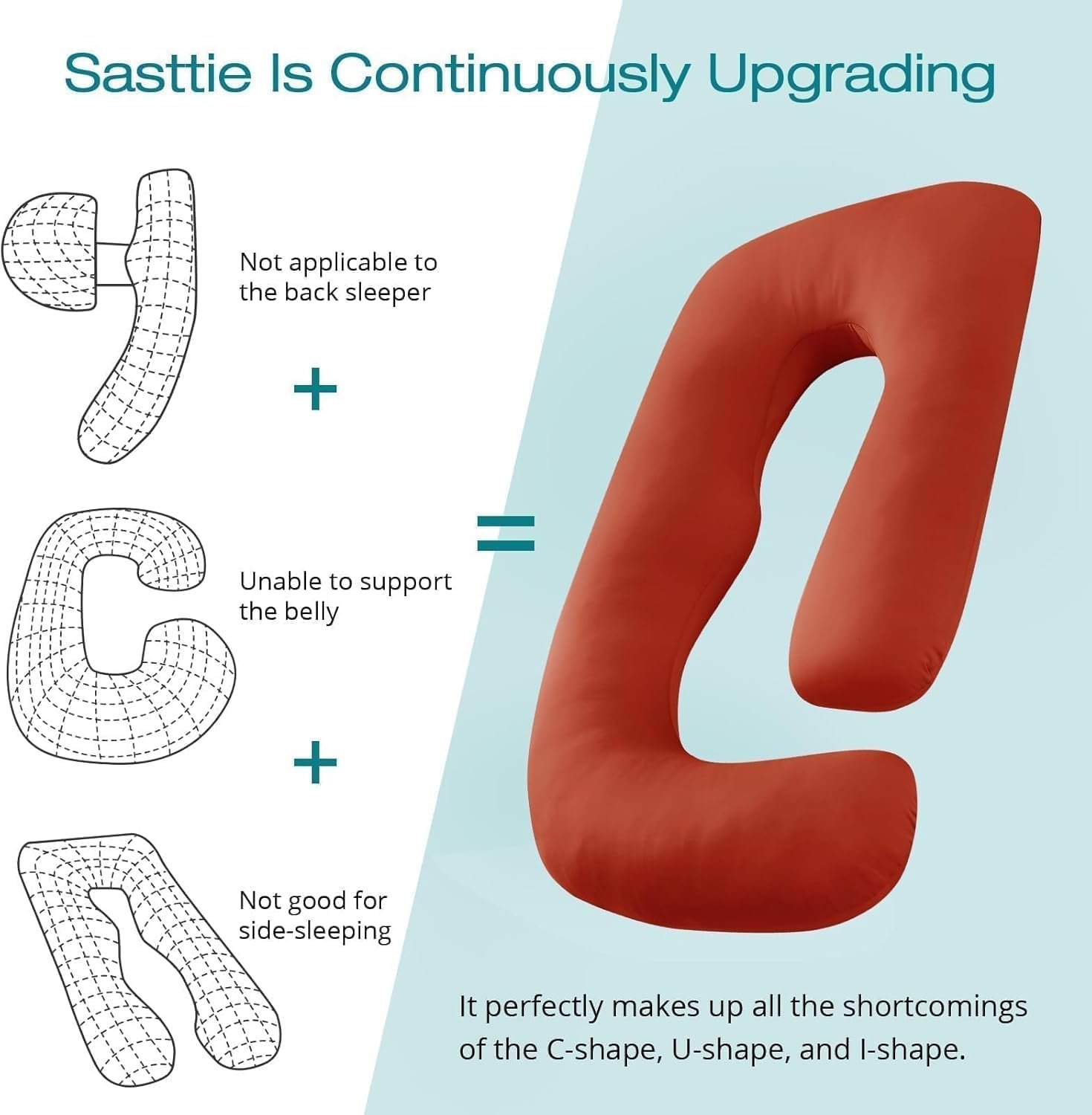 Upgraded U Shaped Pregnancy Pillows: Features an ergonomically designed shape, SASTTIE 4.0 U-shaped pregnancy pillow could fit your body well and provide firm support for your sore shoulders, numb arms, growing belly, tight back, as well as swollen feet