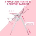 Multi-Use High Chair, Grow With Your Baby: Sejoy baby high chairs are easy to adjust: choose from one of 2 positions for the reclinable backs.3 foot rest positions, and 6 seat height options: the baby chair for eating comfortably.can be used as an eating chair, game chair, sleeping chair, feeding chair or even a toddler chair (remove the tray)
