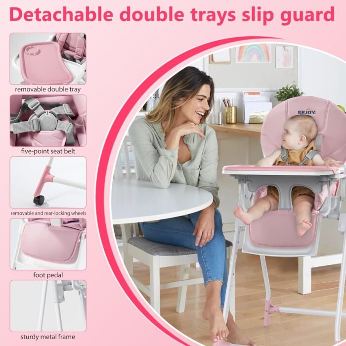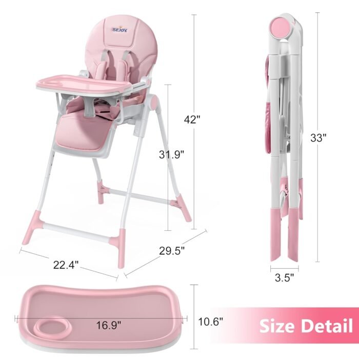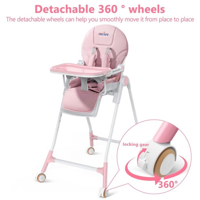 Multi-Use High Chair, Grow With Your Baby: Sejoy baby high chairs are easy to adjust: choose from one of 2 positions for the reclinable backs.3 foot rest positions, and 6 seat height options: the baby chair for eating comfortably.can be used as an eating chair, game chair, sleeping chair, feeding chair or even a toddler chair (remove the tray)