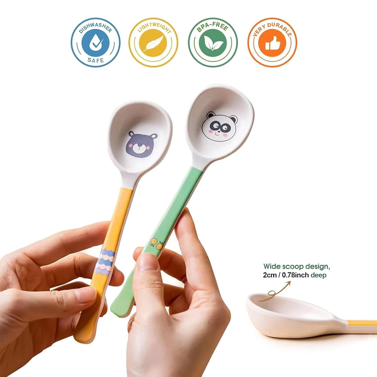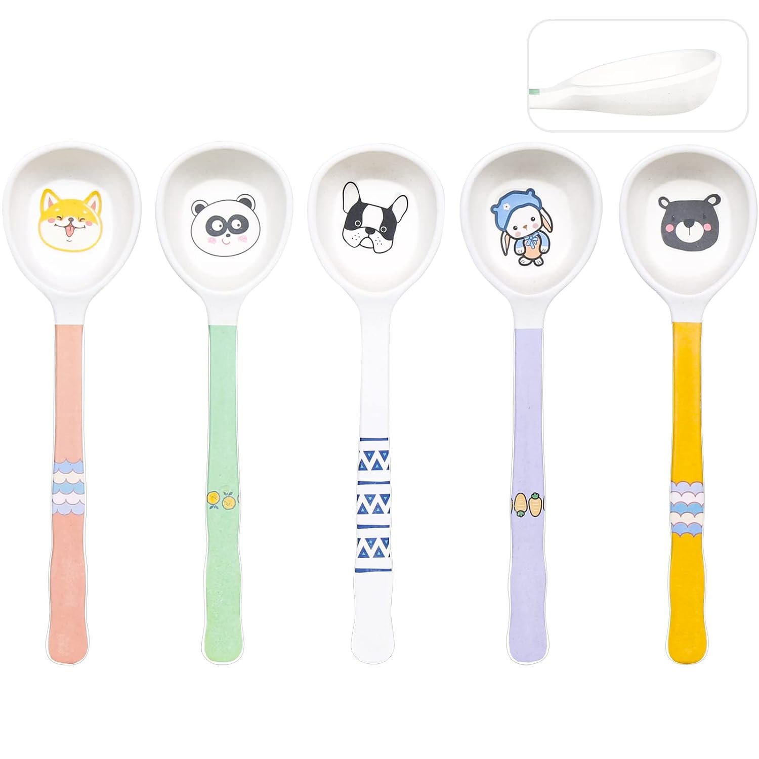 Cartoon Deep Spoon – Designed with cartoon, 5 different patterns to choose. Processed with stylish shape and deep size. The deep spoon can better scoop porridge, soup, rice paste and dessert. Suitable for adults and children.