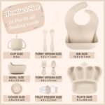 10 PCS SILICONE BABY FEEDING SET – Our baby weaning set for baby comes with everything your baby need to transition to self feeding. The newborn essentials must haves includes 1 baby suction plate with 5 dividers, 1 suction bowl, 1 silicone bibs with food catcher, 1 sippy cup with straw and lid, 1 snack toddler cups lid, 1 spoon, 1 fork, 1 baby spoon, 1 baby fork and 1 baby fruit food feeder pacifier. The baby feeding supplies baby stuff baby boy essentials newborn essentials toddler plates