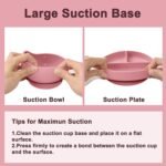 Strong Suction: Our baby plates and baby bowls features a strong suction base that securely adheres to smooth surfaces, including high chair trays, preventing your baby from pulling it off. The divided plate design holds various foods separately, allowing your baby to learn self-feeding without worrying about making a mess on the floor or dropping plates and bowls. Enjoy every mealtime moment with you and your baby.