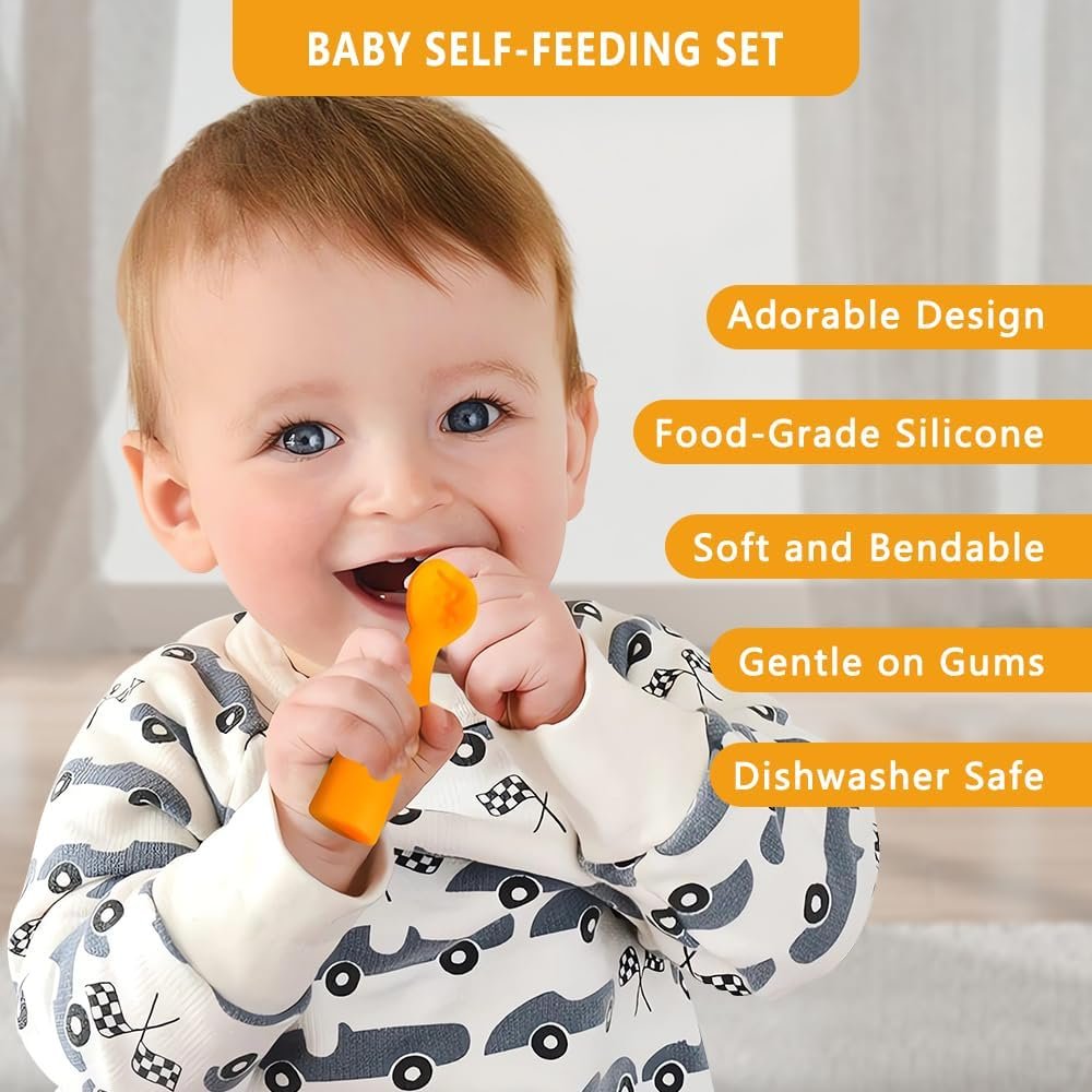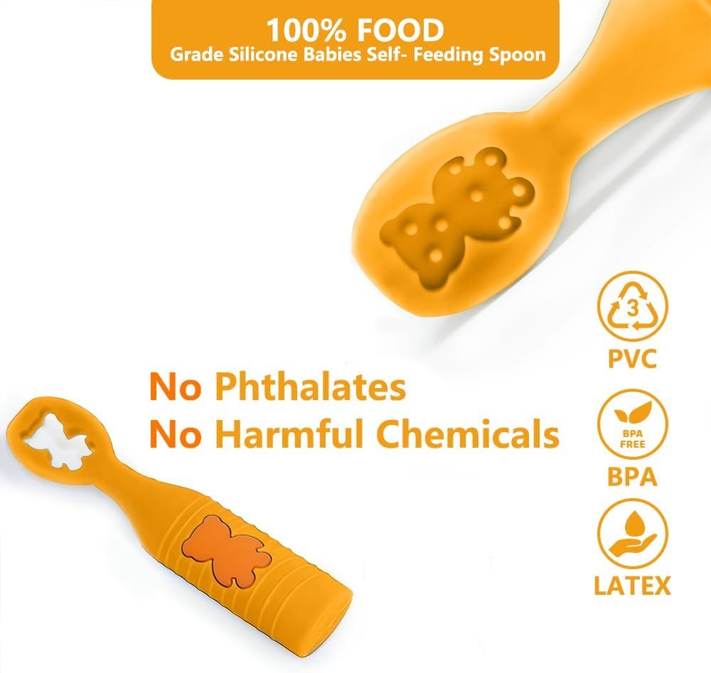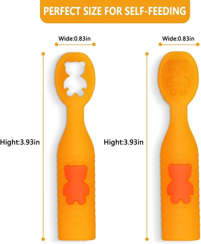 【SAFE MATERIAL & SAFE DESIGN】:Our spoons are incredibly durable,are made of BPA-free,food-grade silicone,dishwasher,and freezer safe.Made with food-grade silicone,they’re free from harmful chemicals like BPA and phthalates so you can feel good about giving them to your little one.