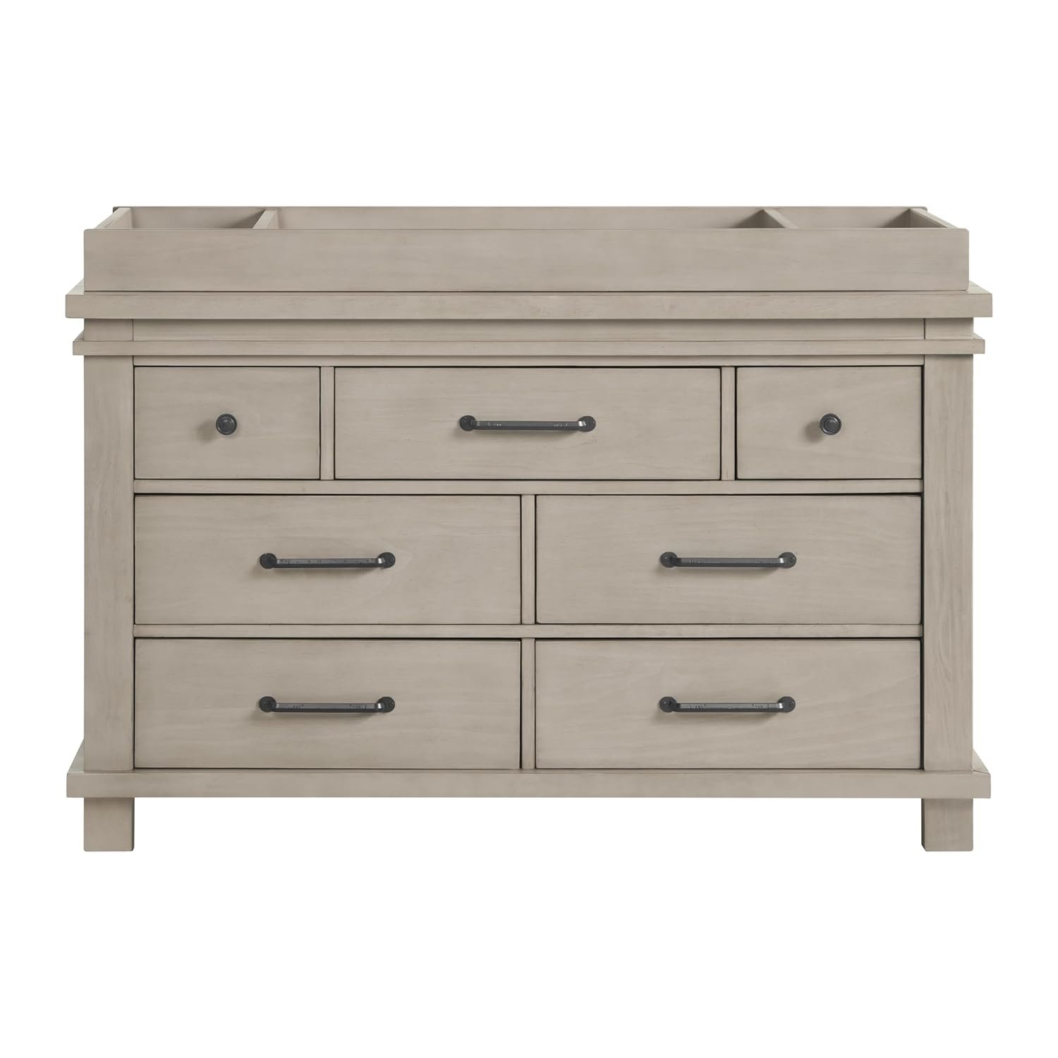 The Soho Baby Hampton Changing Topper is thoughtfully designed to convert the Soho Baby Hampton 7-Drawer Dresser (43037930) into a changing station. With the included hardware, simply mount the Changing Topper to the back of the dresser. The Changing Topper features a large changing area for a standard sized changing pad and two additional storage area’s for all of baby’s necessities. As your child grows, remove the Changing Topper and the dresser easily transitions into a spacious, stand-alone grownup dresser.
