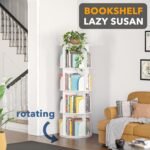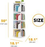 ORGANIZED AND BEAUTIFUL – Make your books neat and organized with this rotating bookshelf tower lazy susan; The space saving design can hold up many books in a compact space; SIZE: 18.1″W x 18.1″D x 50″H