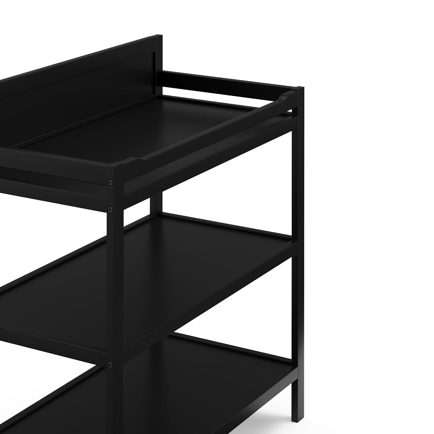 The Storkcraft Alpine Changing Table combines clean lines, modern style, and a universal design that will match perfectly with your baby’s nursery. The Alpine includes a water-resistant vinyl changing pad with safety strap, and 2 open shelves to keep your most important nursery essentials nearby. JPMA certified and tested to meet or exceed all applicable ASTM International and CPSC safety standards, the Alpine is backed by Storkcraft’s 1-year limited warranty and supportive customer care. Complete the Storkcraft Alpine Collection with the matching Alpine 4-Drawer Chest, Alpine 6-Drawer Double Dresser, and Alpine 4-in-1 Convertible Crib. Exclusively from Storkcraft, proud recipient of the 2020 Women’s Choice Award for 9 out of 10 Customer Recommended Baby & kids furniture.