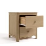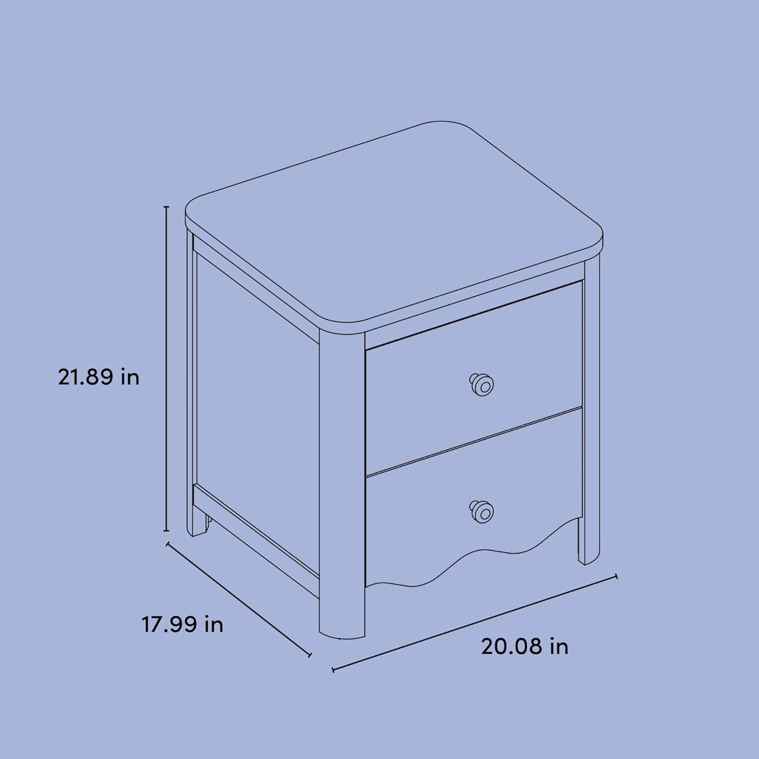 PREMIUM, DESIGNER, WOOD 2-DRAWER NIGHTSTAND — WITH ICONIC “WAVE” DESIGN: This iconic, design-forward, easy-to-match, premium 2-drawer wooden nightstand is versatile enough to pair with any style of kids bedroom; Elegant “wave” details and rounded posts
