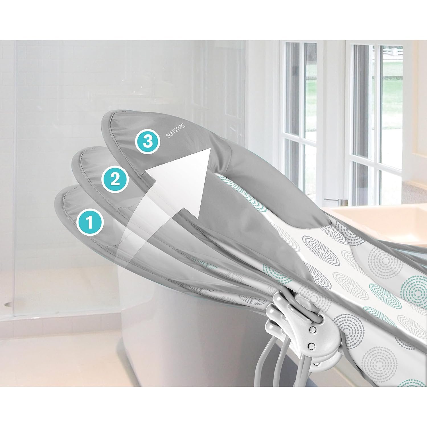 Bathe your baby safely and securely with the Summer® Deluxe Baby Bather! A soft, mesh newborn sling cradles your baby, while the plush bolster headrest provides gentle support where they need it most. With three recline positions, you can give your little one the most comfortable bathing experience for their first sponge bath and beyond. The machine washable fabric makes cleaning the Deluxe Baby Bather a breeze, and the compact fold design makes it the perfect bathing solution for both home and travel.