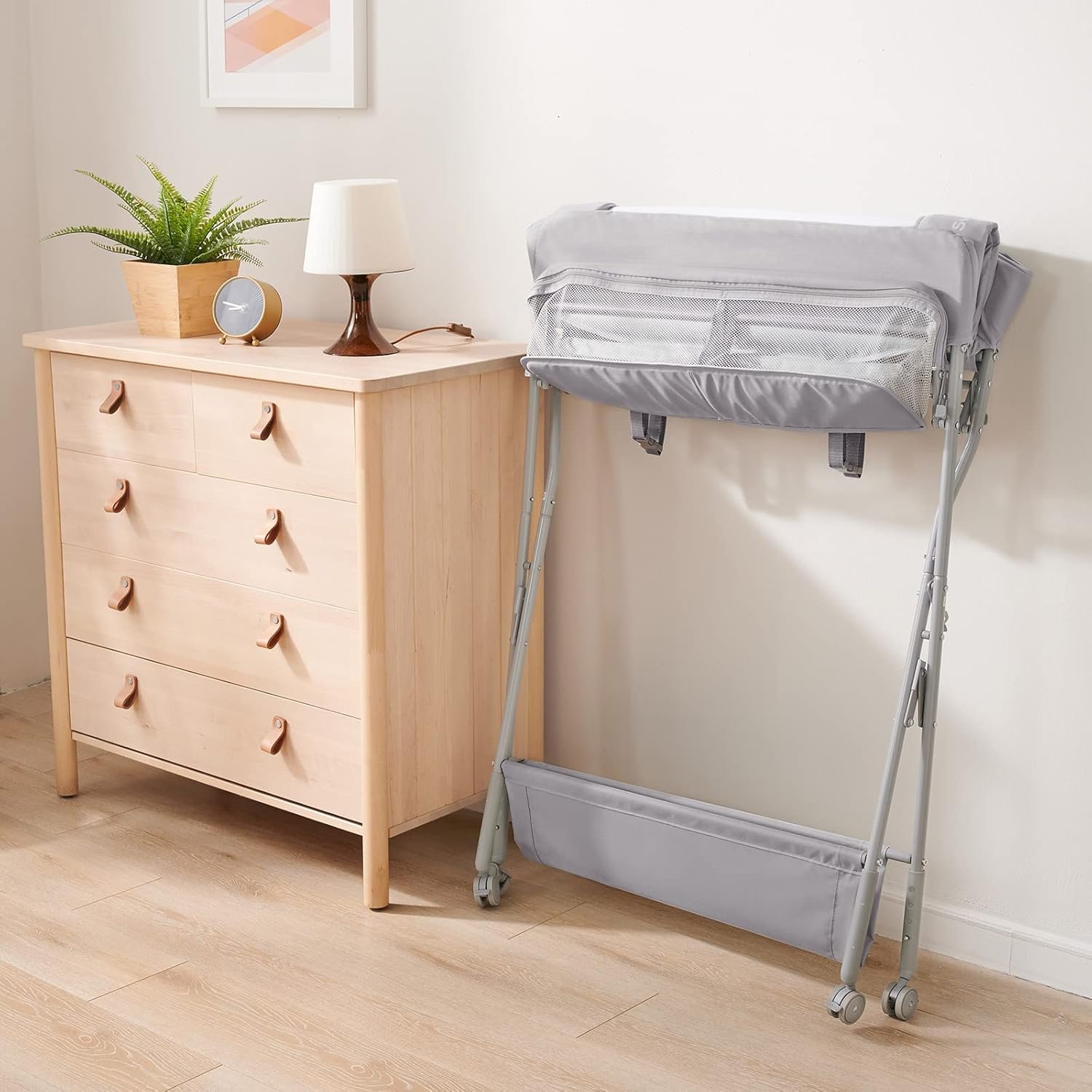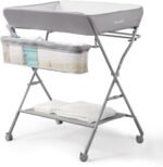 PORTABLE AND MOBILITY – The baby diaper changing table is very easy to assemble, and you can fold it up quickly and easily, as well as move it with universal wheels. It’s space-saving even for a small nursery. The changing pad cover is water-resistance and easy to clean, and you don’t need to buy an extra pad.