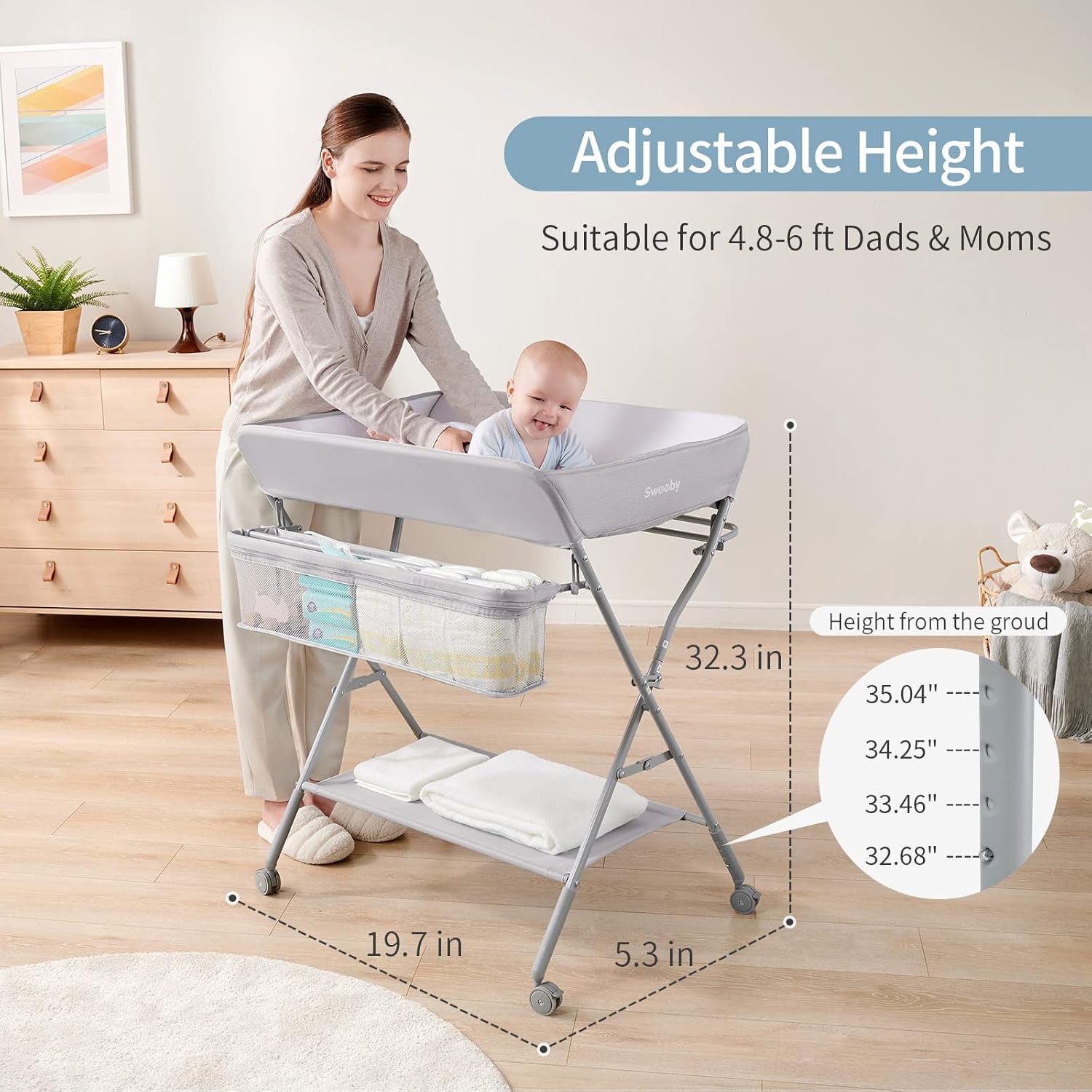 SAVE YOUR BACK – Sweeby baby changing table offers a perfect height for parents with 4-level adjustable height, from 32.68in to 35.04in, fit 4.8~6.0 ft dads and moms, no more bending or kneeling ever, make your baby nursery easier!