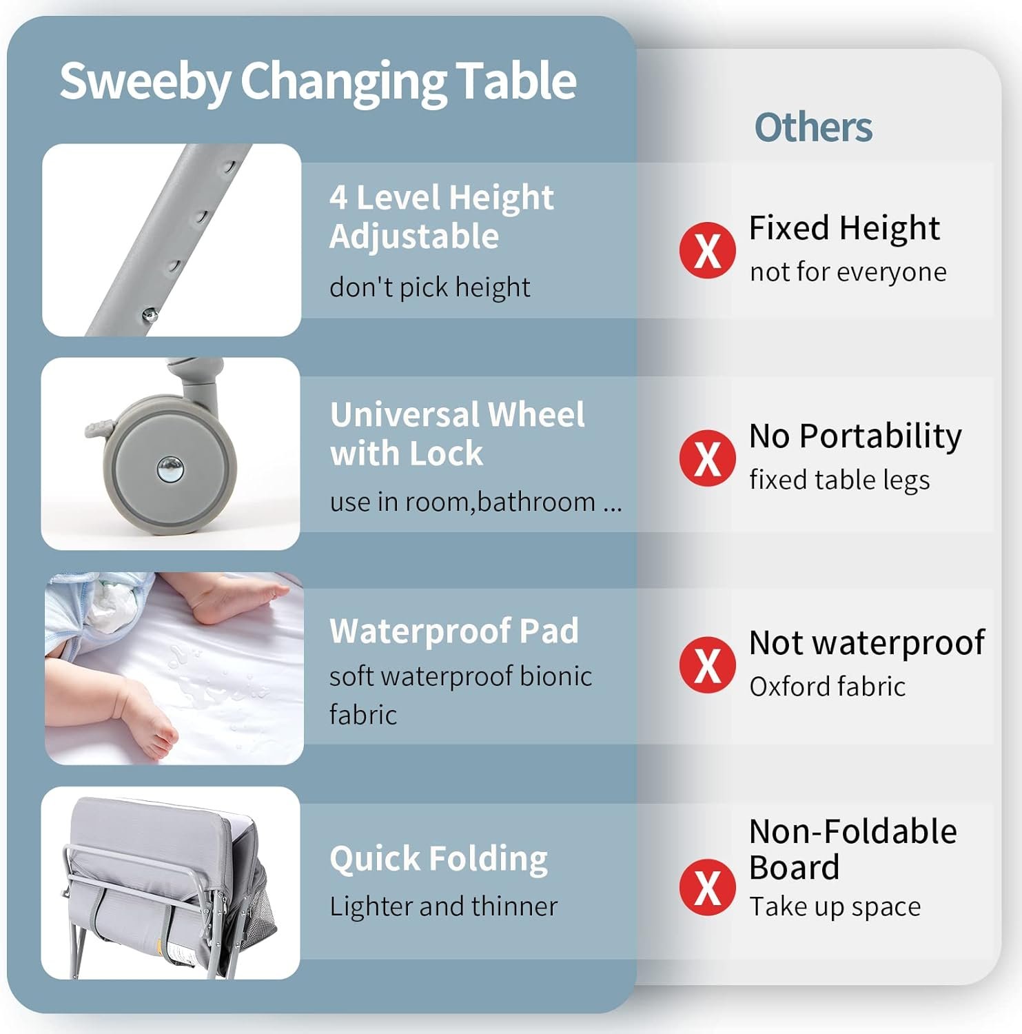 STABLE AND STRONG STRUCTURE – Sweeby diaper changing table is made of thickened steel frame and quality fabric, lightweight than typical changing table furniture, and with four sides around the top of the table are closed, all to ensure your baby’s safety. You can use it to change diapers, massage, bathe your baby, it’s a functional changing table topper for dresser.