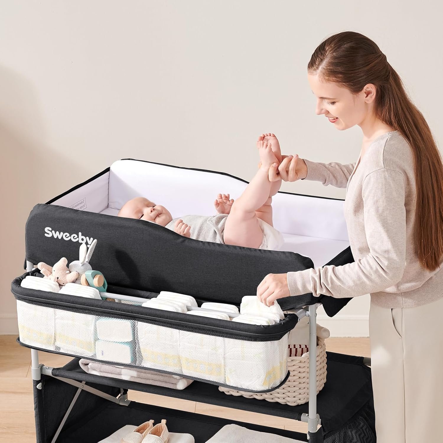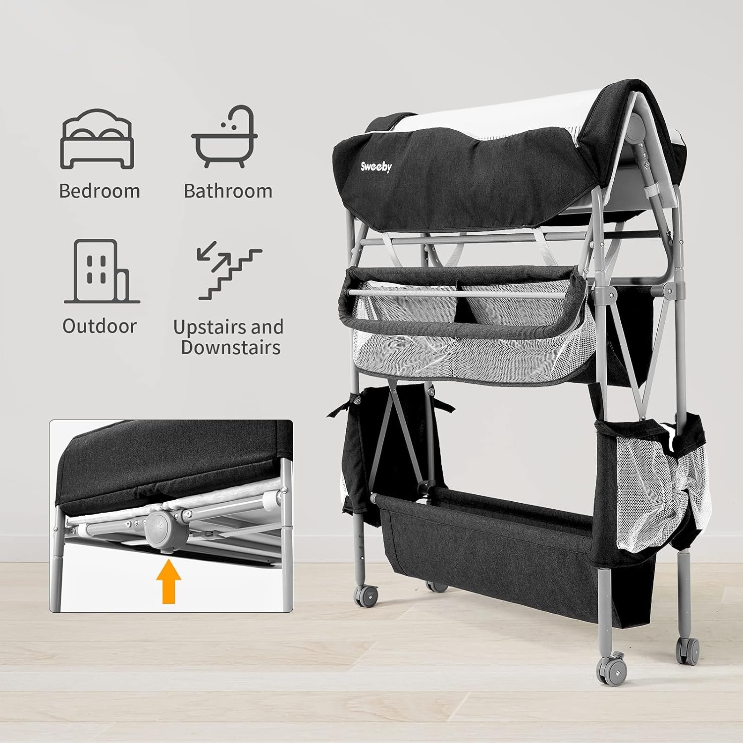 ADJUSTABLE HEIGHT CHANGING TABLE – Sweeby baby changing table offers a perfect position for parents with 4-level adjustable height, from 33.46 in to 36.42, perfectly fit 4.5~6.0 ft dads and moms, no more bending or kneeling ever, it is a diaper changing table that could do great help for baby changing or baby nursery.