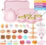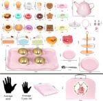 【LEARNING THROUGH PLAY】Tea set toy can stimulate your child’s imagination, creativity and hand-eye coordination. The enough & variety cute desserts and tea toy will make children fall in love with role-playing and allow multiple children to play, develop their sharing habit and enjoy it. Perfect for kids aged 3-8, this tea-time toy encourages pretend play and socialization skills while having a blast