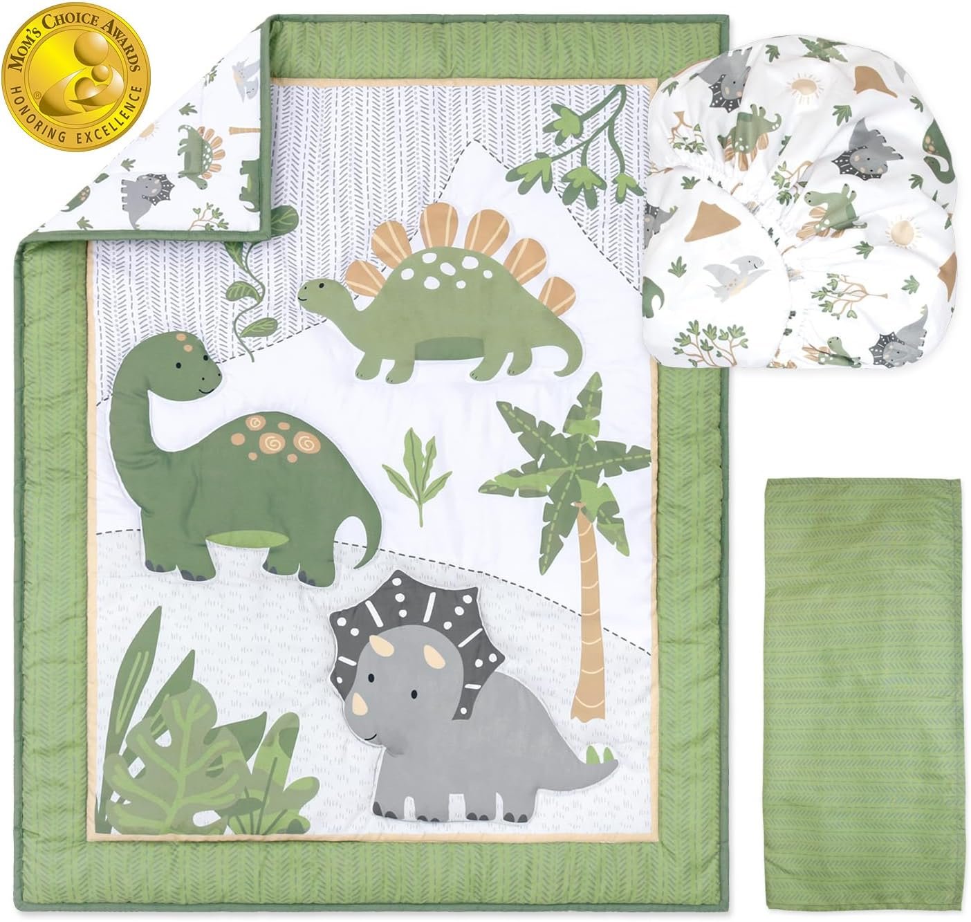 Complete Set: This 3-piece set includes a beautifully crafted crib quilt, a fitted crib sheet, and a matching bed skirt, offering a stylish and coordinated look for your nursery.