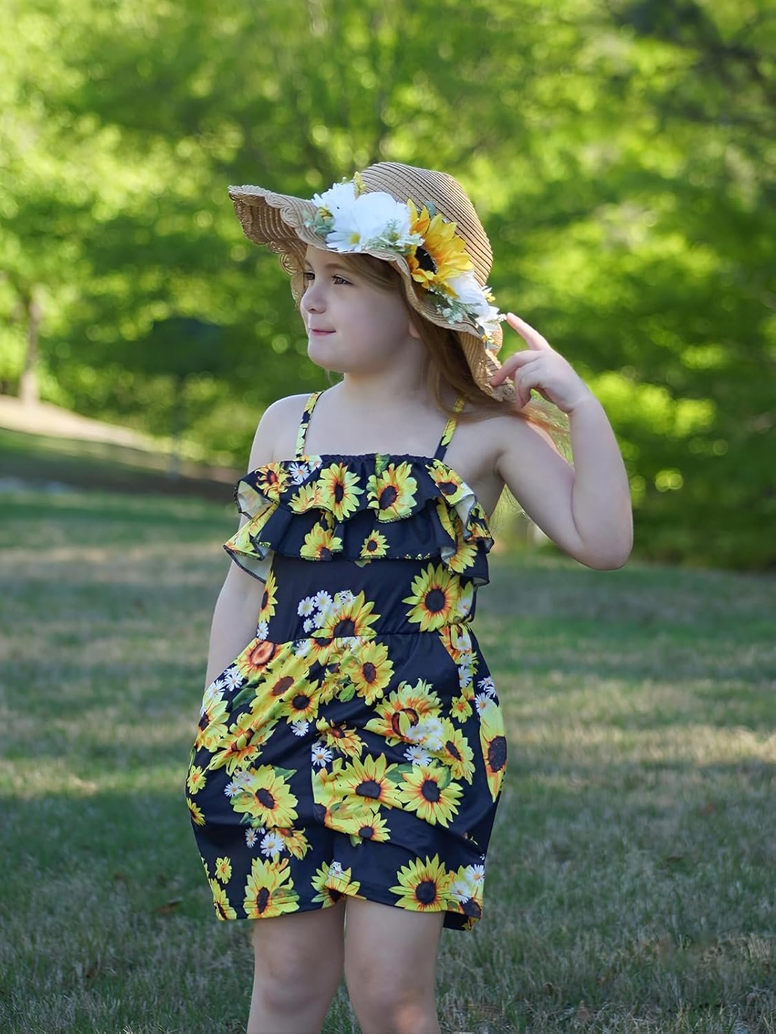 Adorable rufflebutts jumpsuit for toddler girls, perfect for playtime and nap time.