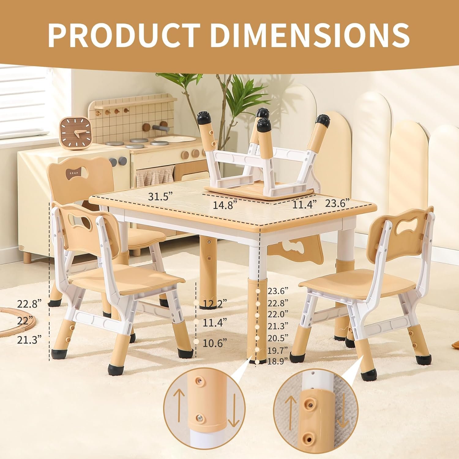 【HEIGHT ADJUSTABLE KIDS TABLE & CHAIRS】Both the table leg and the chair leg can be adjusted in height by adjusting the fixed position of the screw. The kids table can be adjusted in 7 different heights and the chair in 3 different heights. The height can be adjusted according to children of different ages and heights to ensure that they can all sit comfortably on the chair.