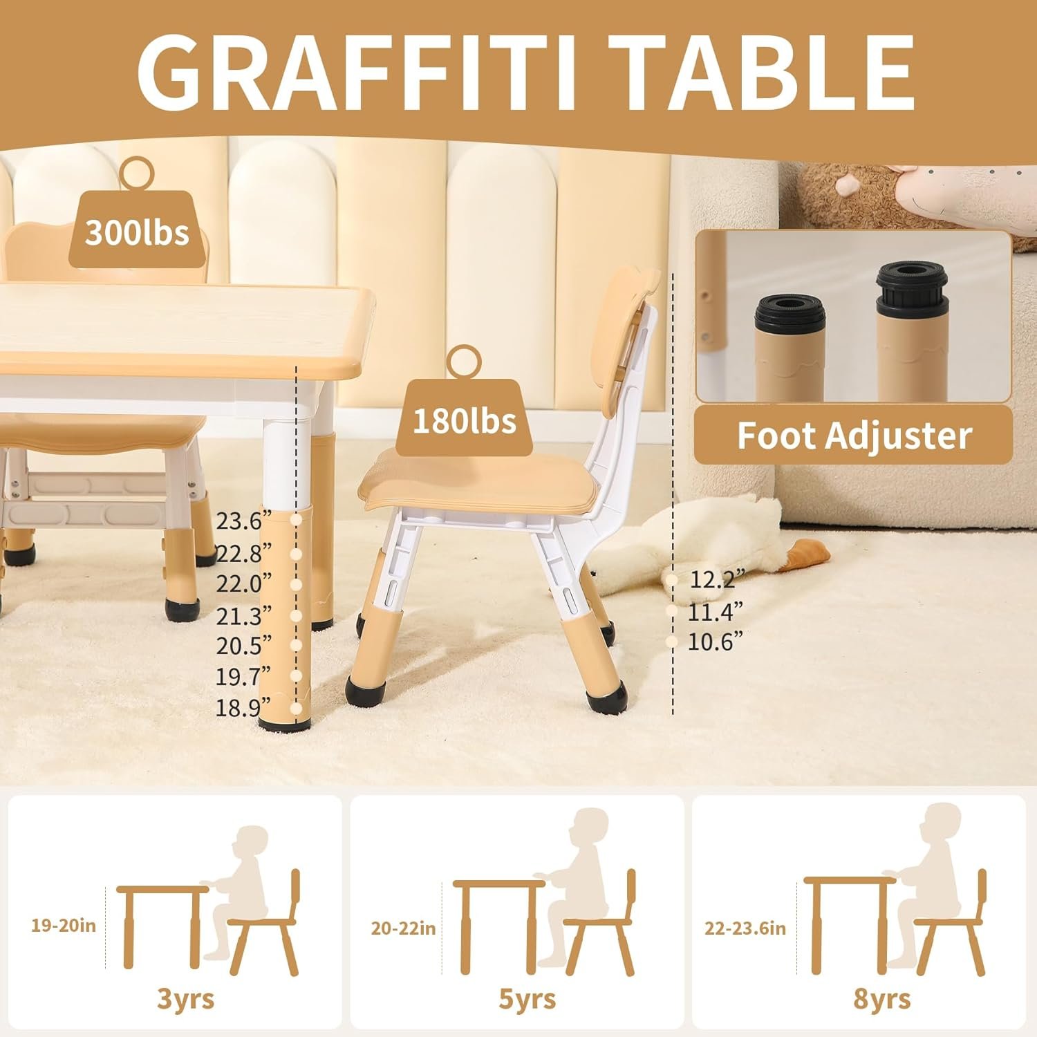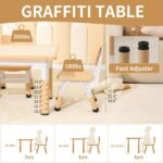 Customers find the table and chair set to be well-made and sturdy, with chairs that can support up to 300lbs. The product is easy to assemble and adjust for different heights as children grow, making it ideal for children’s use. They appreciate its graffiti-style design, washable surface with water color pens, and consider it good value for money.