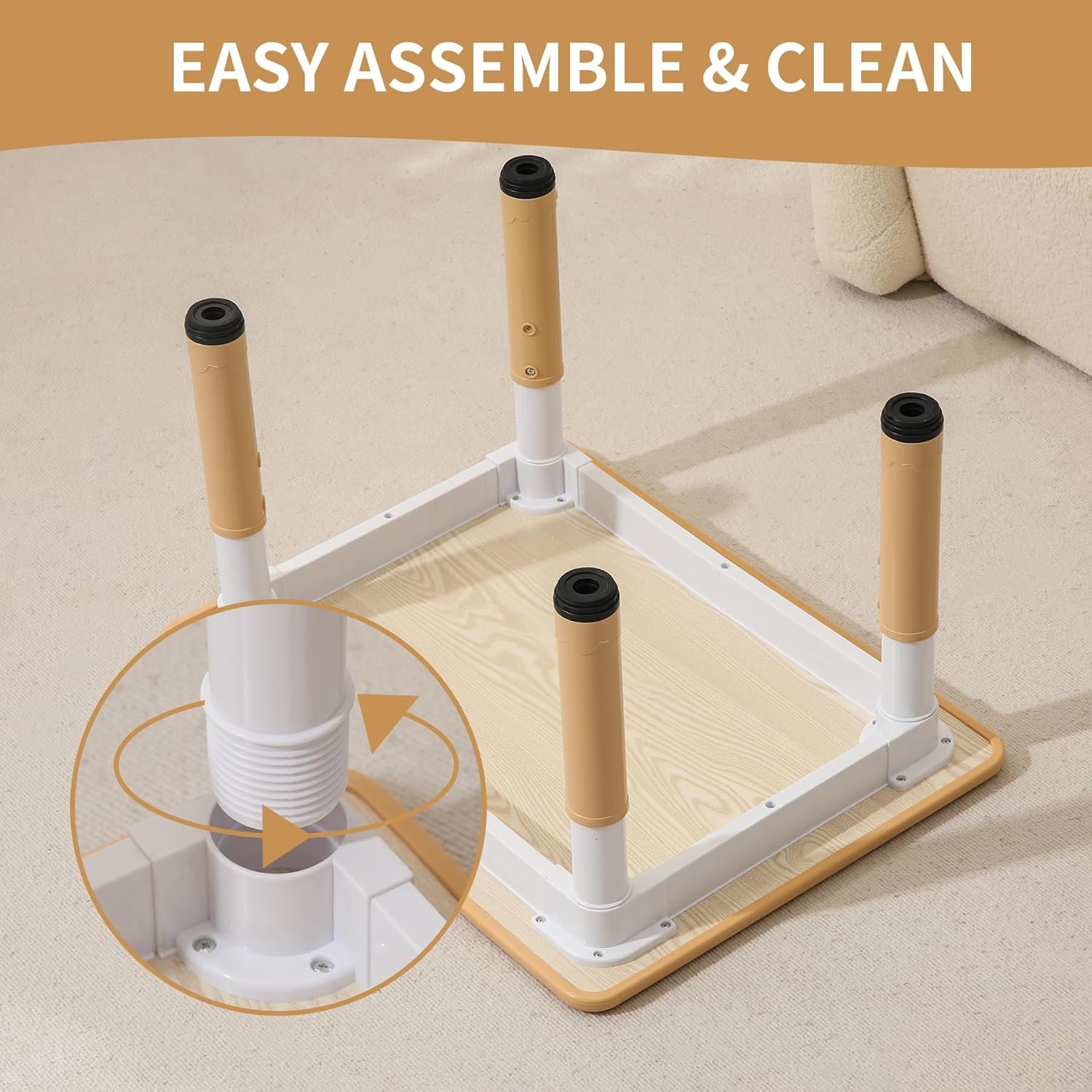 【MULTIFUNCTIONAL KIDS TABLE SET】Perfect for toddlers and preschoolers, this kids table is the perfect “all-in-one” place to enjoy meals and snacks, engage in arts and crafts, play with their best pals, and have fun time. Moreover, the desktop is very easy to clean, and stains from water-based brushes can be easily erased.