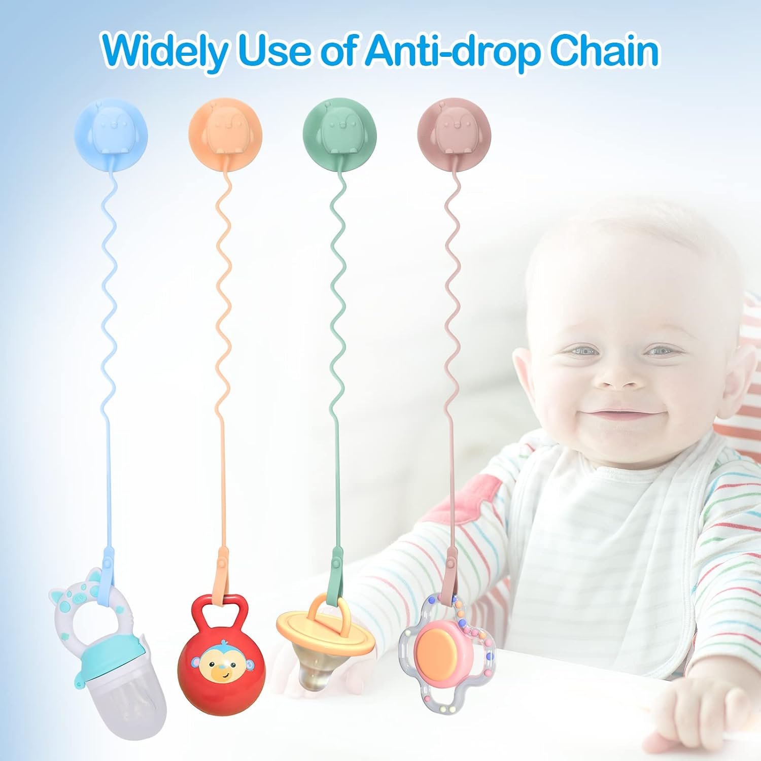 The suction cup can be adsorbed on the dining table, and the anti-drop clip can be used for various purposes such as pacifier, teether, toys, etc.