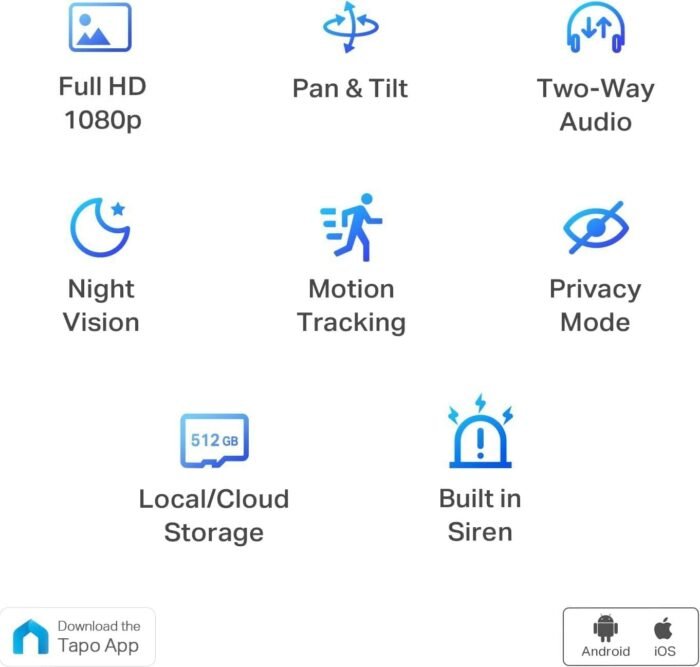 Make your home security smarter with Tapo C200 smart indoor security camera Wi-Fi. This Pan/Tilt IP camera sees everything across an entire room or walkway with the 360° horizontal and 114° vertical range pan/tilt field of view. Get instant push notifications when motion, person, or baby crying is detected from this baby camera monitor, all with no additional fee. Check what’s inside your home, even at night with night vision up to 30ft. with integrated IR sensor. Use 2-way audio with built-in siren to see as a pet camera with phone app and ward off intruders. Fully compatible with Amazon Alexa and Google Assistant, use your simple voice command to view Tapo indoor security camera live stream on Echo Show or Google Chorme Cast with a screen. Save footage continuously on up to a 512 GB microSD card (not included) or subscribe to Tapo Care for cloud storage which saves 30-day video history and provides additional benefits such as motion tracking, baby crying detection, and more. [Before purchasing a microSD card, please check the TP-Link website FAQ to ensure compatibility with your device.]