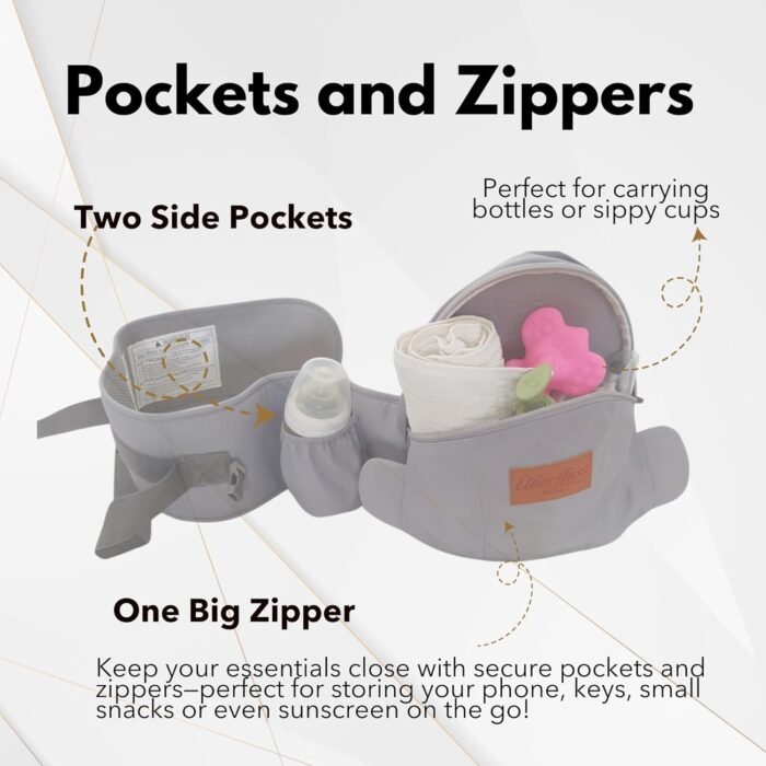 【Adjustable & Simple Storage】With an adjustable waistband, this newborn carrier ensures optimal support & secure fit for both mom and dad. Featuring two side pockets & one large zippered pocket, it has ample space for essentials like keys phones bottles or snacks.