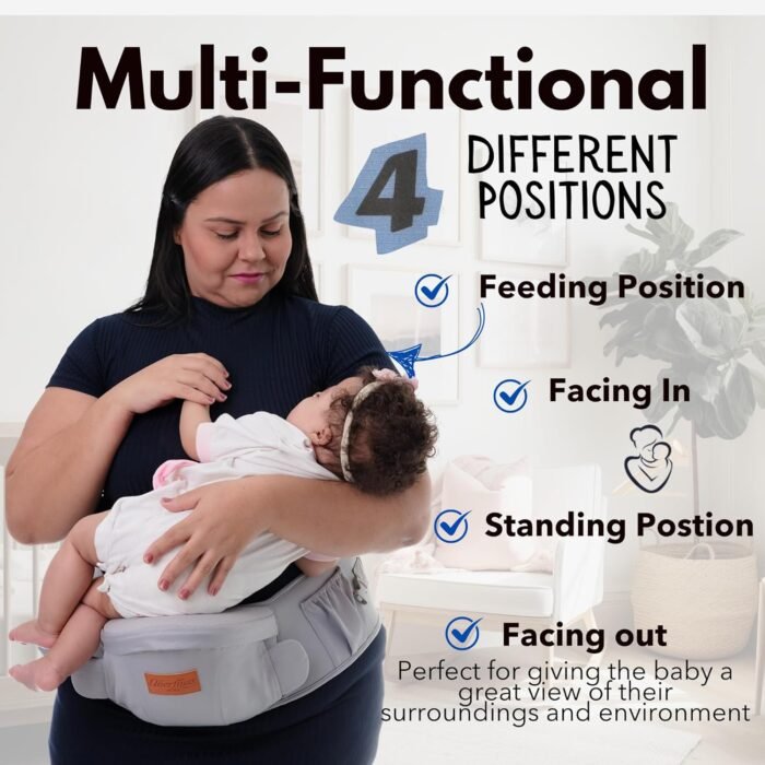 【Versatile 4-in-1 Design】This hip carrier for baby supports four carrying positions to adapt to your baby’s growth and your needs from newborn to toddler. Feeding position for discreet nursing; facing in for cozy snuggles; facing out to explore the world; standing position for extra support.