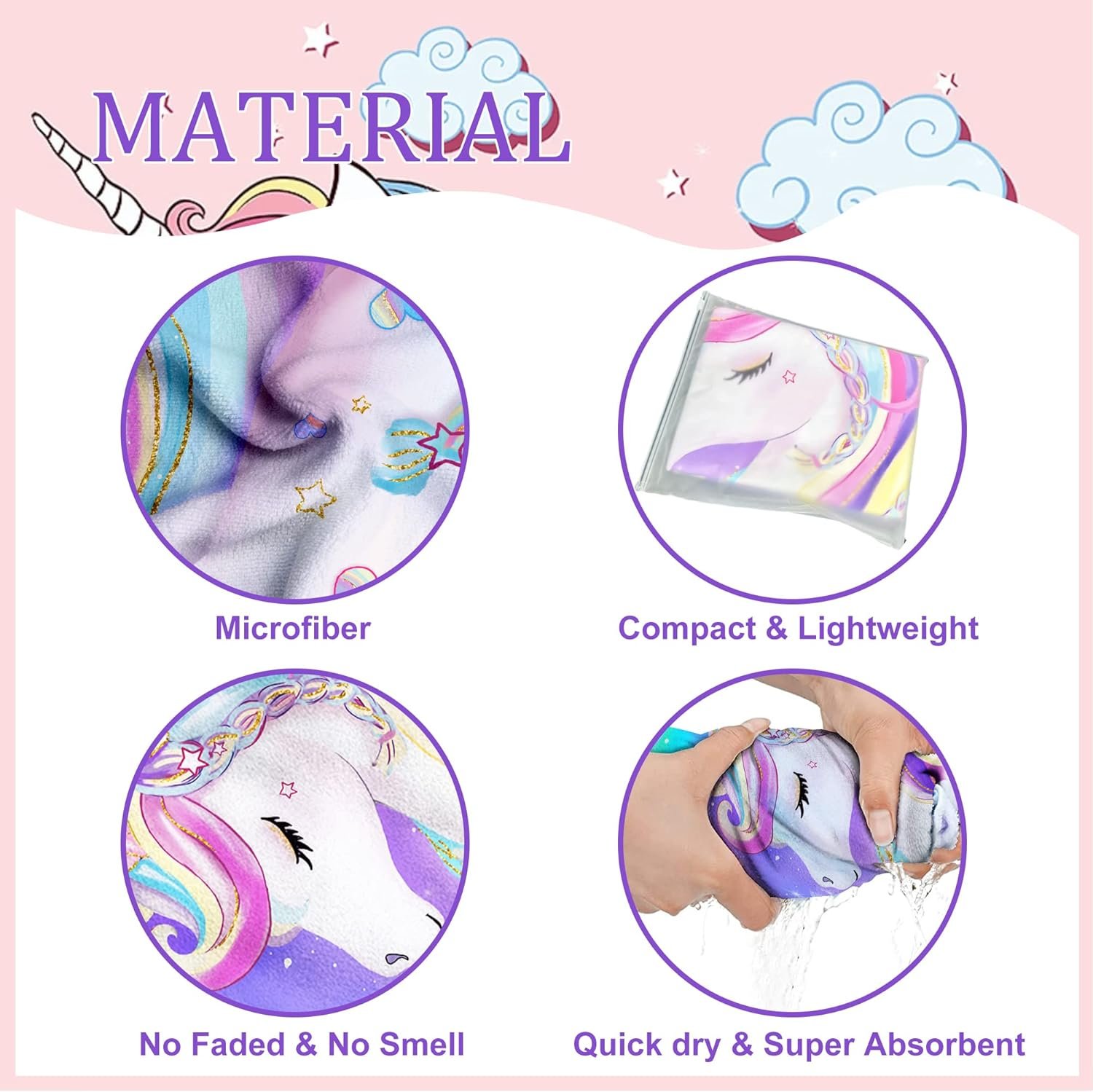 【Best Gifts for Summer】Best travel beach towels for this summer that is sand proof, super absorbent and quick drying, cute unicorn pattern design that come makes our unicorn beach towels a perfect gift for kids, girls and women.