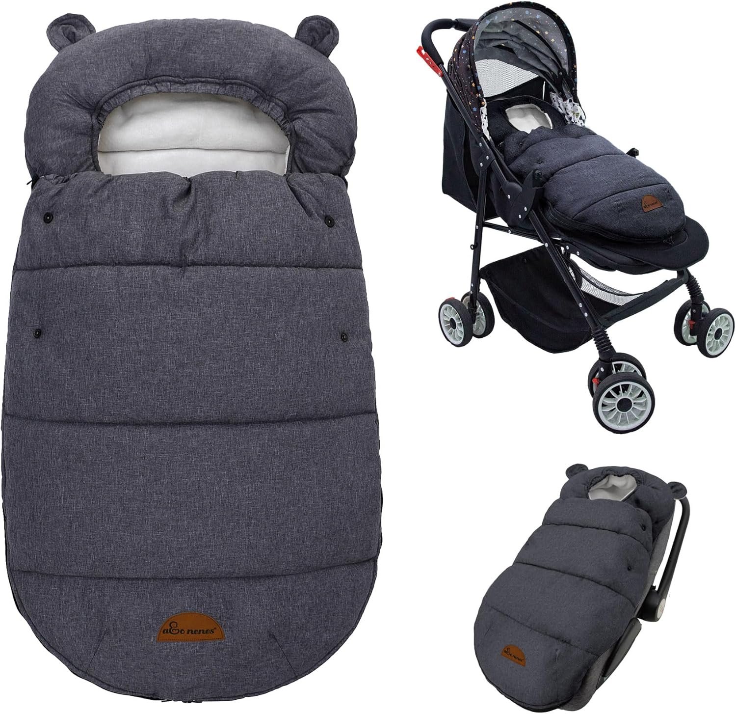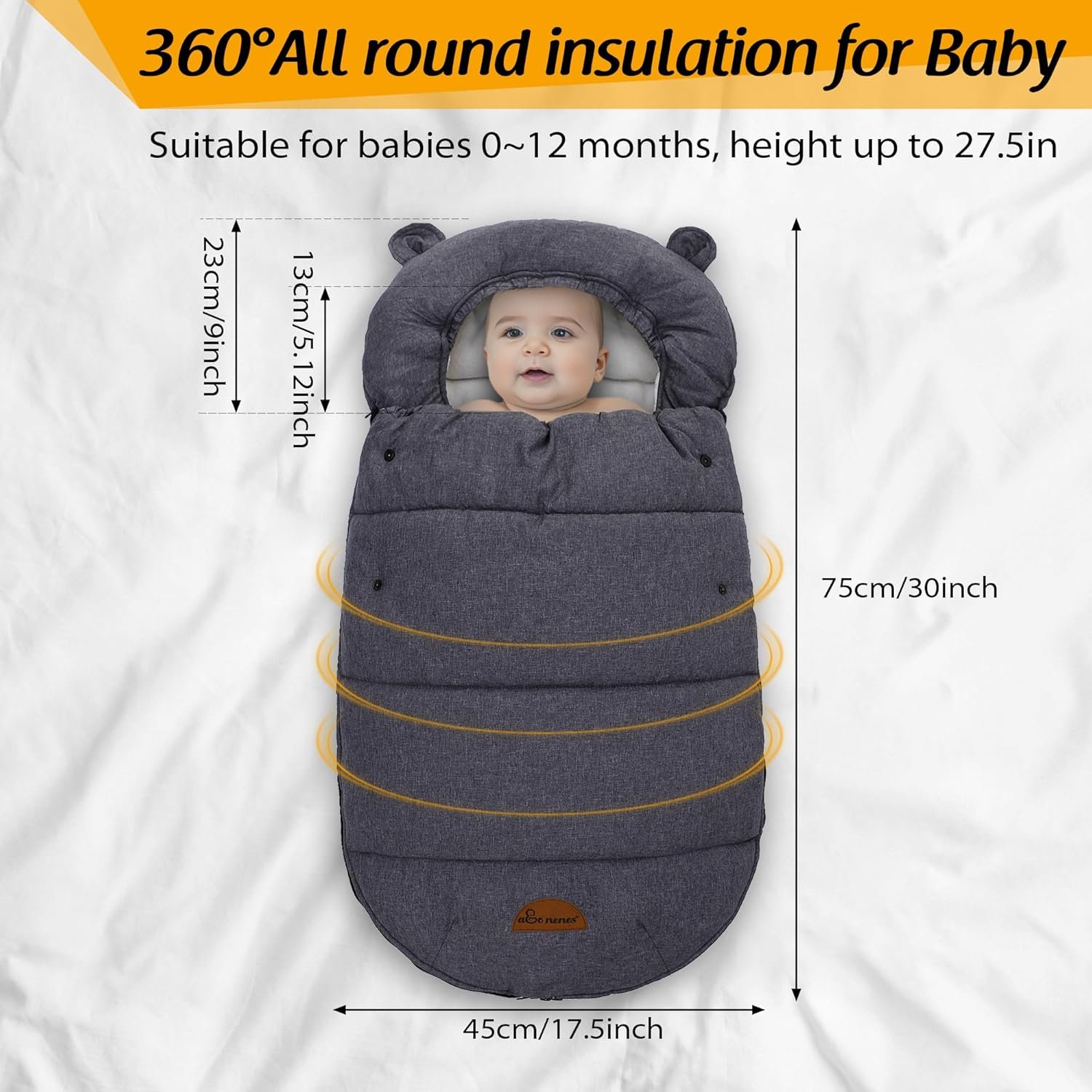 UNIVERSAL STYLE AND DIMENSION: The dimension of the length is 75cm, the width is 45cm. Our footmuffs are available for both boys and girls, it is a universal sleeping bag suitable for babies from 6 to 36 months, the design of the sleeping bag is suitable for all brands of strollers and prams.